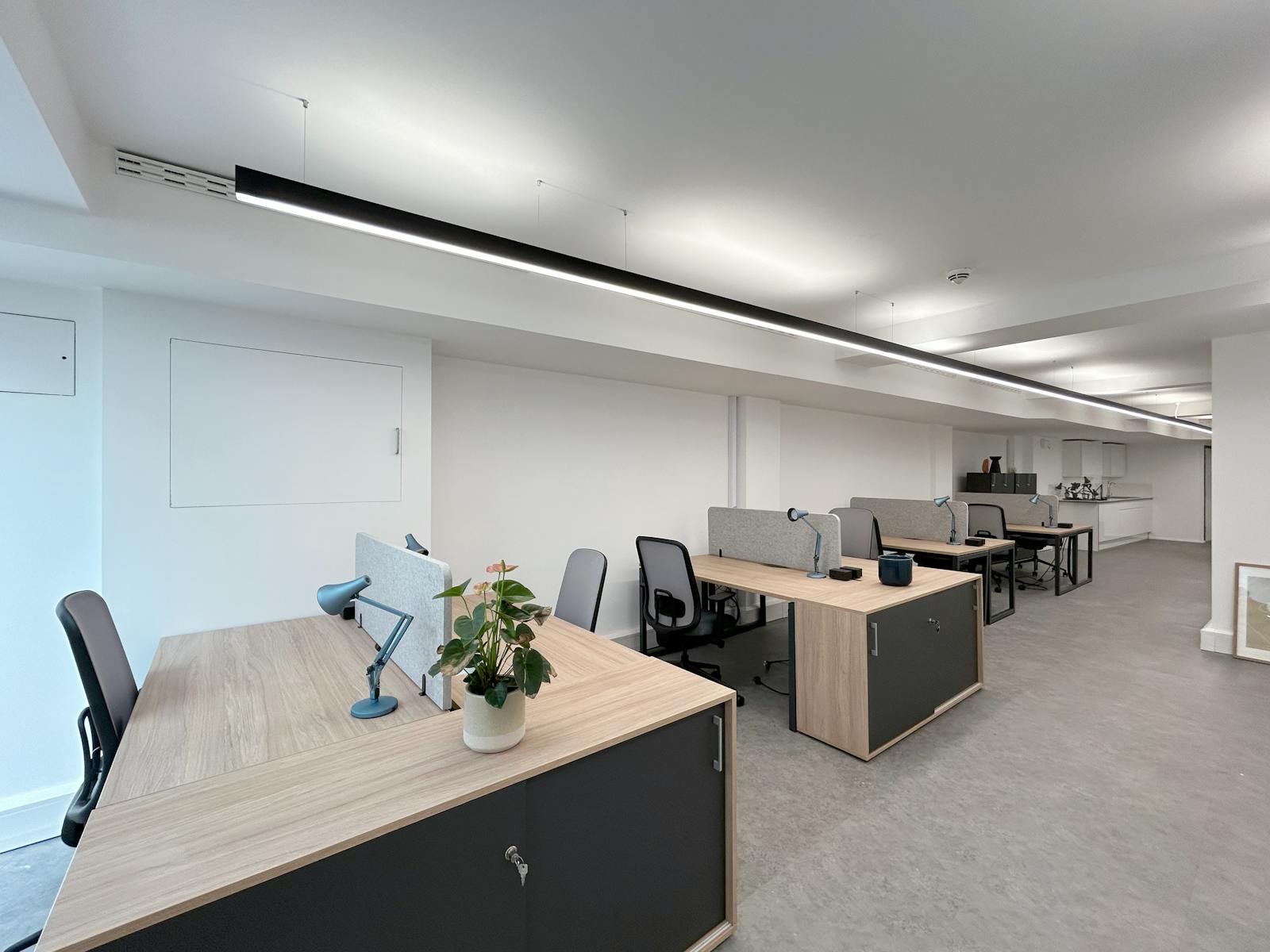 The floor further benefits from shower and WC facilities, together with energy-efficient lighting, providing a highly functional and attractive working environment.
