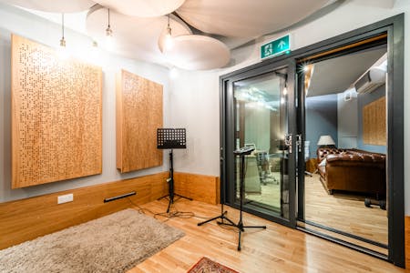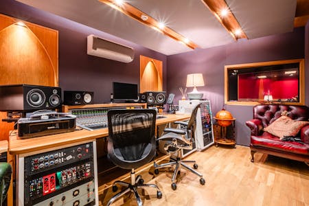 The studios have been built to a high technical specification and are presented in excellent condition throughout. Each studio comprises a control room, live room, and vocal booth, with one benefiting from an additional machine room and storage space. The layout also includes a fully fitted kitchen with a pantry and laundry area, a comfortable lounge space, and a private WC. The property is secure and easily accessible, featuring a separate entrance through a glass-fronted lobby with multiple access controls. A private lift provides disabled access directly to the studio level. The entrance door is steel-framed with triple locking, and the building benefits from CCTV coverage throughout. This property offers a unique opportunity for music producers, sound engineers, and creative professionals seeking a fully operational, acoustically treated studio facility in a Central London location — ready for immediate occupation and use.
