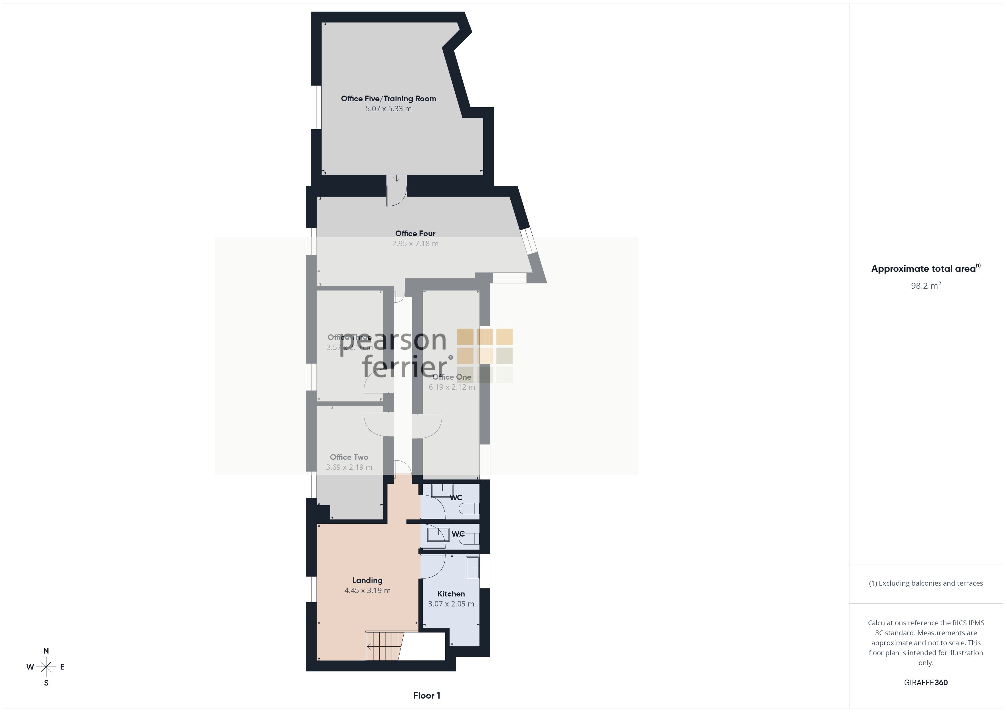 The warehouse area is expansive, providing ample room for storage, manufacturing, or distribution activities. Its generous size allows for flexibility in layout, catering to a variety of business needs. The ground floor also comprises of a reception area, kitchen, W.C, and three further rooms that could be used for storage, packaging, offices etc. To the first floor are five offices which are thoughtfully designed to create a productive workspace, perfect for meetings, administration, or client interactions.