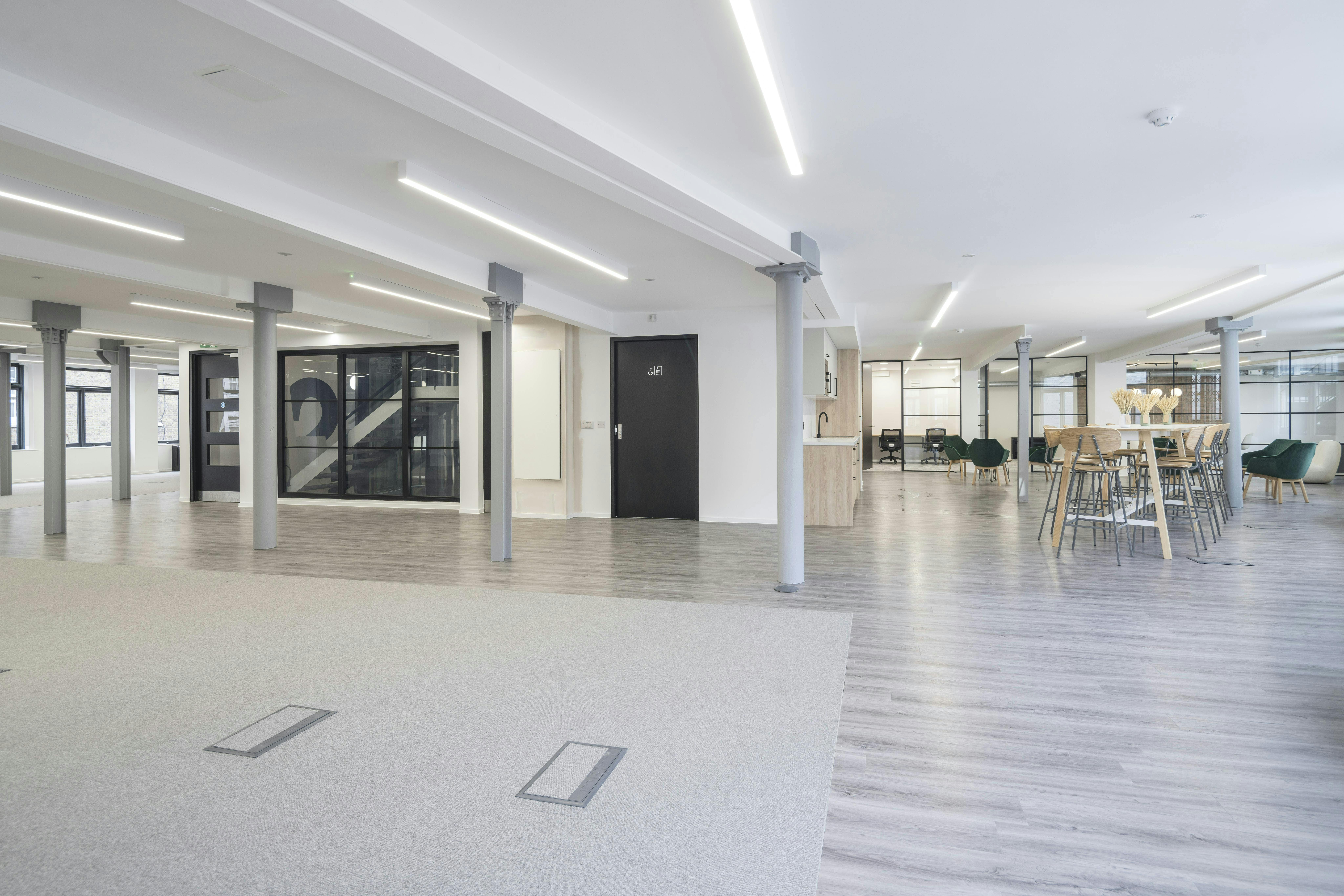 The 2nd floor benefits from 36 workstations, 3 meeting rooms, a new kitchen with breakout furniture and and excellent natural light. The space has characterful features throughout and can be offered in a fully fitted & furnished condition, subject to deal terms.