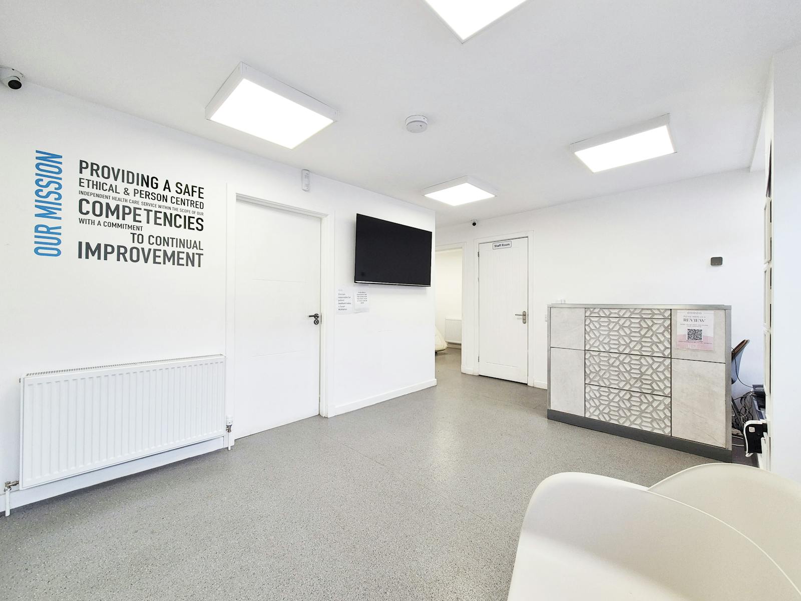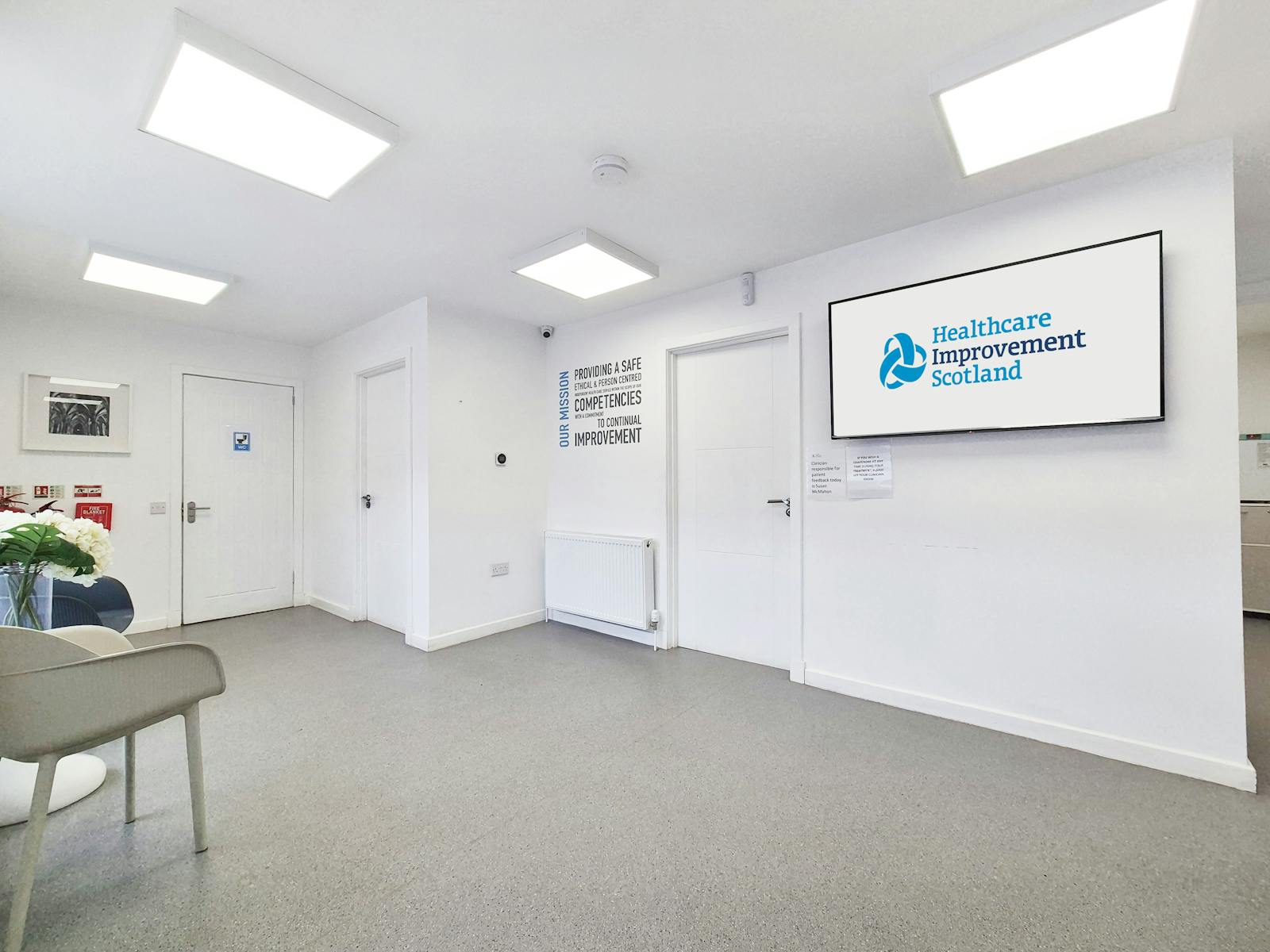 Well-positioned and fully operational, this established property is currently registered with Healthcare Improvement Scotland as an independent healthcare facility. Designed to meet clinical standard, the premises includes compliant sinks, specialist hospital-grade flooring, mechanical ventilation, and widened door access for emergency use.