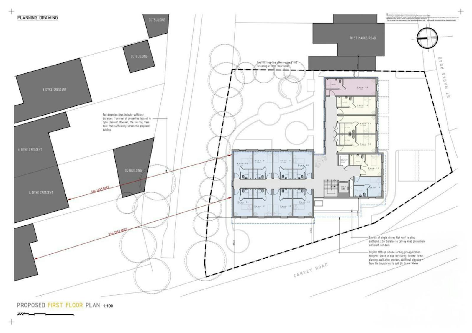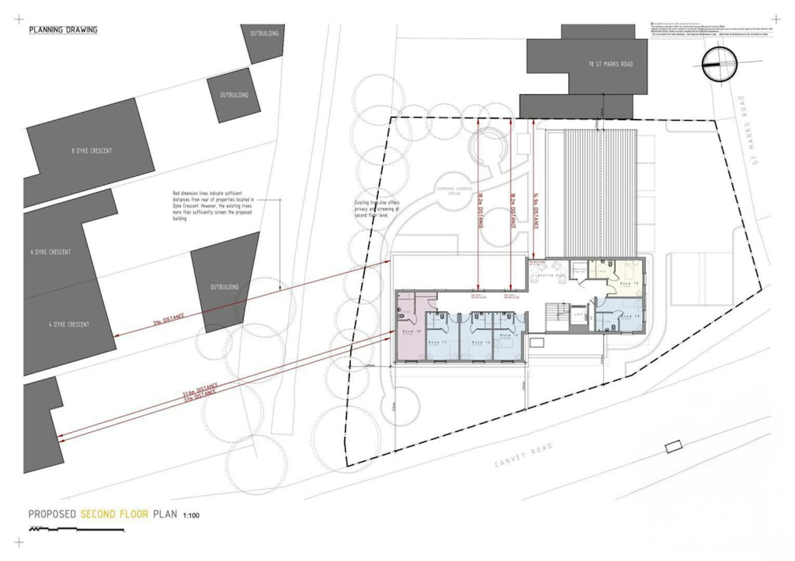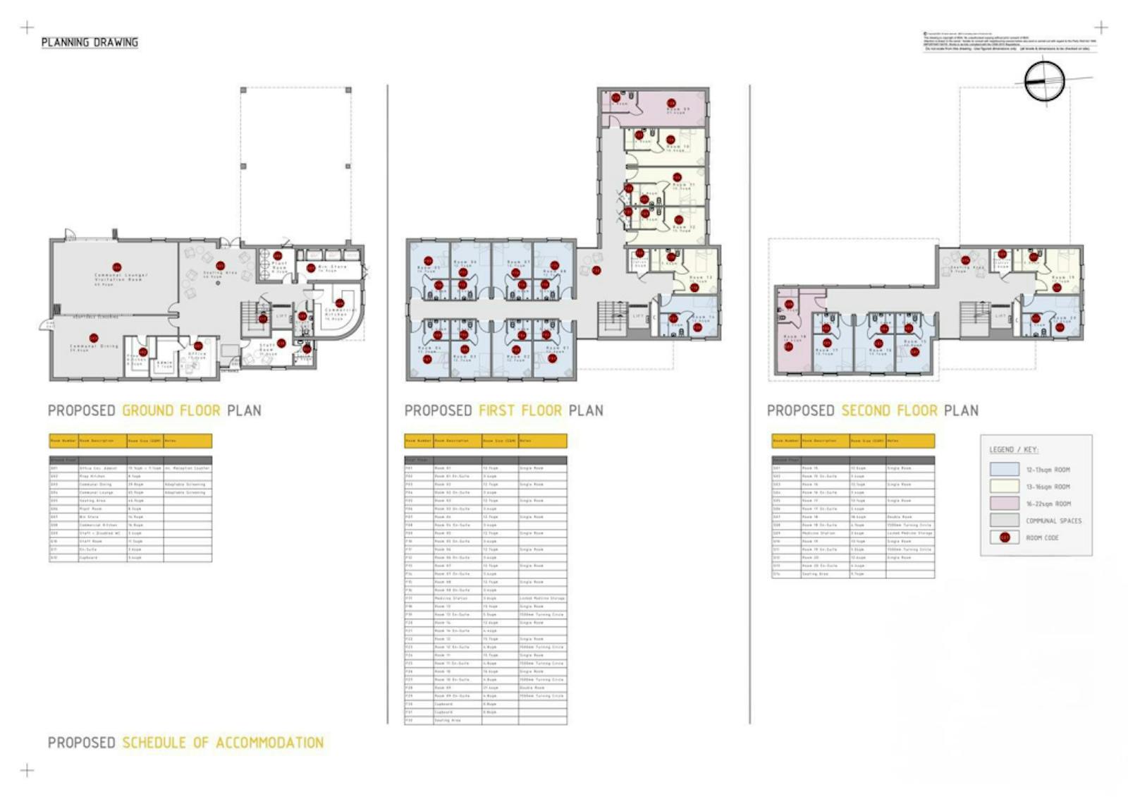 Large front and rear gardens with private seating areas, visitors and undercover parking spaces, private borders and a pedestrian access from Canvey Road. The ground floor space will be made up of a communal lounge and dining area, separate seating area, staff accommodation and toilet, laundry room, storage areas, commercial kitchen, lifts and access to both gardens. The first floor consists of stairs to landing, lift access, seating area, storage and bedroom suites. The second floor comprises of stairs to landing, lift access, seating area, storage and bedroom suites.