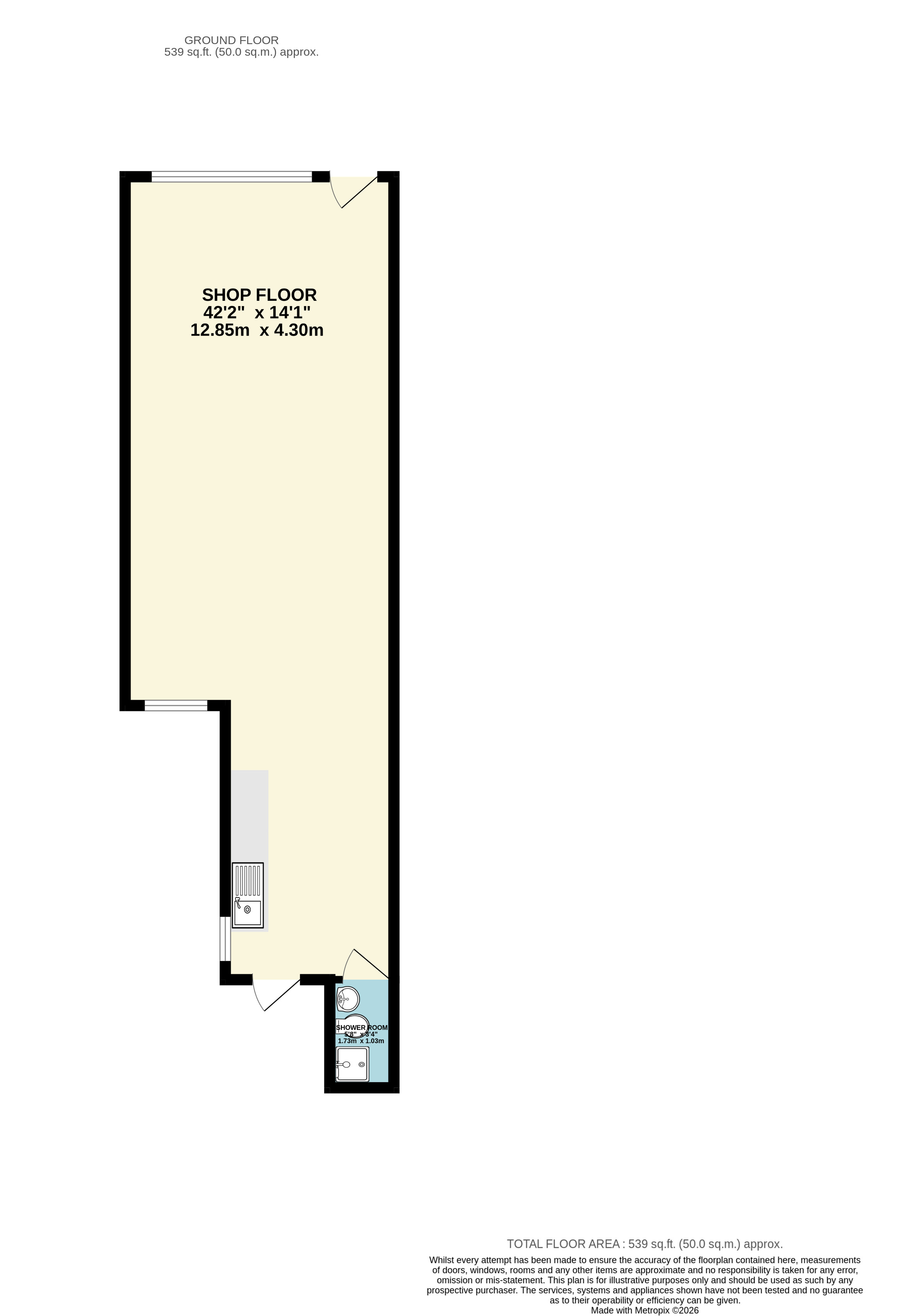 The property was previously used as a chip shop and comprises a large shop floor area opening in to a kitchen with a shower room at the rear. The property has electric roller shutter doors to the front.