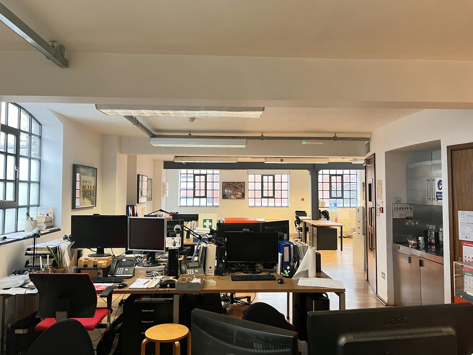 This bright first floor offices in a warehouse style building is approached through an attractive gated courtyard entrance. The offices are open plan and benefit from industrial style Crittall windows on 3 sides affording excellent natural light. There is a kitchen/break-out area and tea point together with demised male & female toilets on a half landing. There are also secure cycle racks.