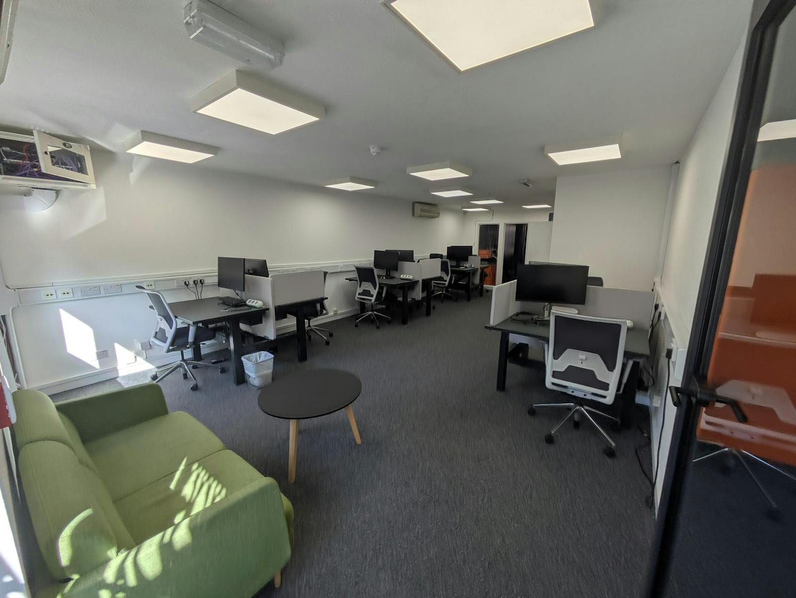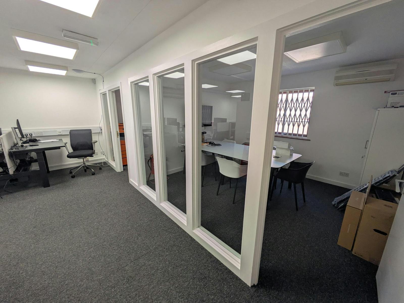 One of the larger units within Merrow Business Park, these premises are being sold with a tenant in situ (Zwift UK Ltd) whose lease is due to expire in November 2027. Set over two floors with a central core for the staircase and WC unit, the premises are in a good condition throughout with the tenant utilising the ground floor for storage and testing of equipment, and the first floor being office use with some areas partitioned. A Juliette balcony has been fitted on the first floor, typical of the estate. The units will be cleared and redecorated in a neutral manner upon expiry of the lease by the tenant.