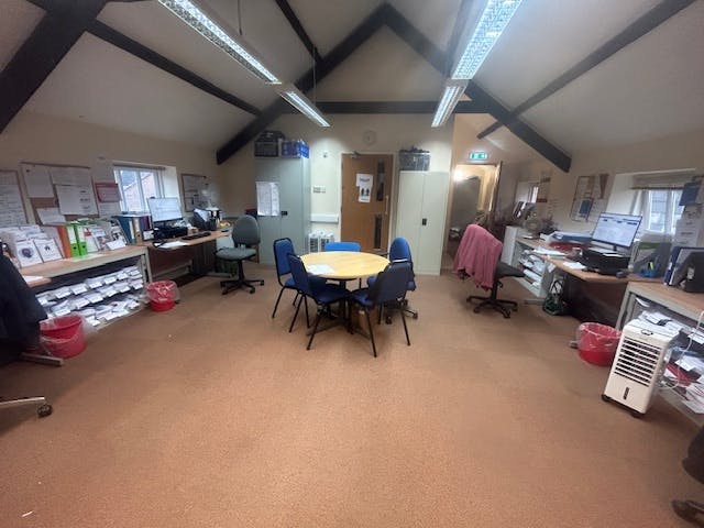 The main office space comprises a large open plan area with two partitioned rooms. The office space is well presented. The ceiling has feature beams and Cat II lighting. There is carpet floor covering and double glazed windows with internal window blinds and dado level trunking.