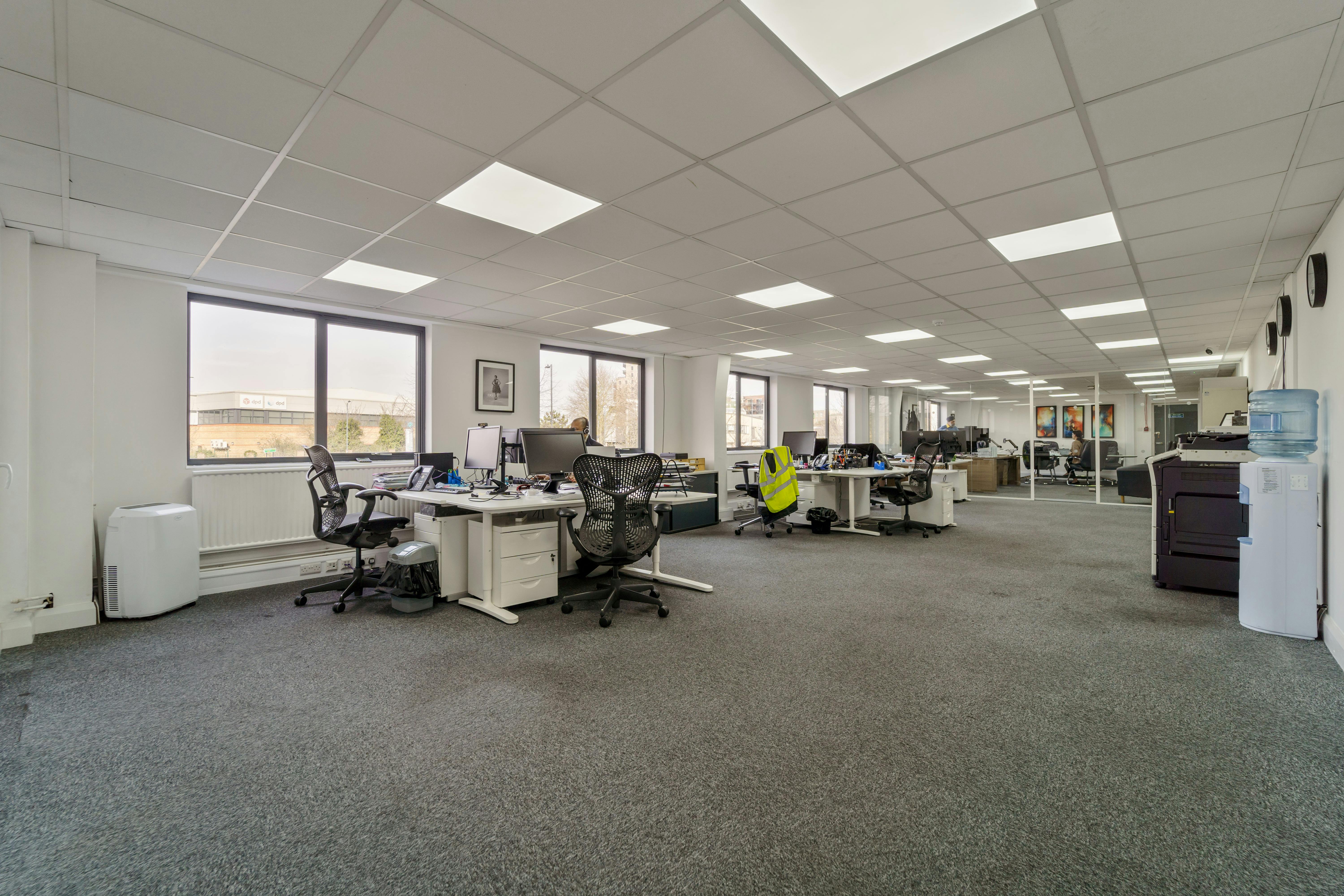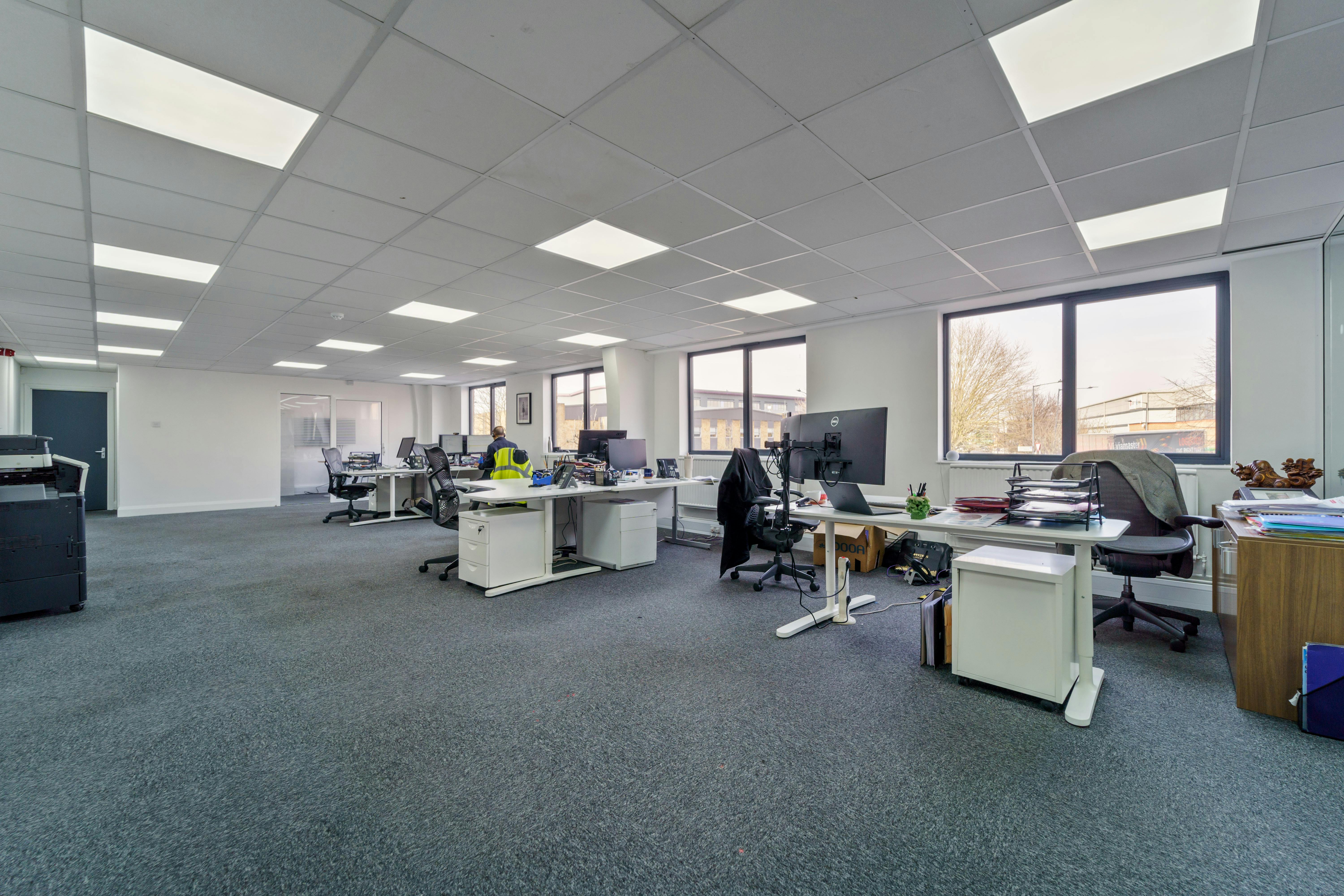 The ancillary office space has been recently refurbished, consisting of an open plan layout with private offices and a meeting room. These offices are equipped with gas heating for a comfortable working environment, and multiple well-appointed WC facilities enhance convenience.