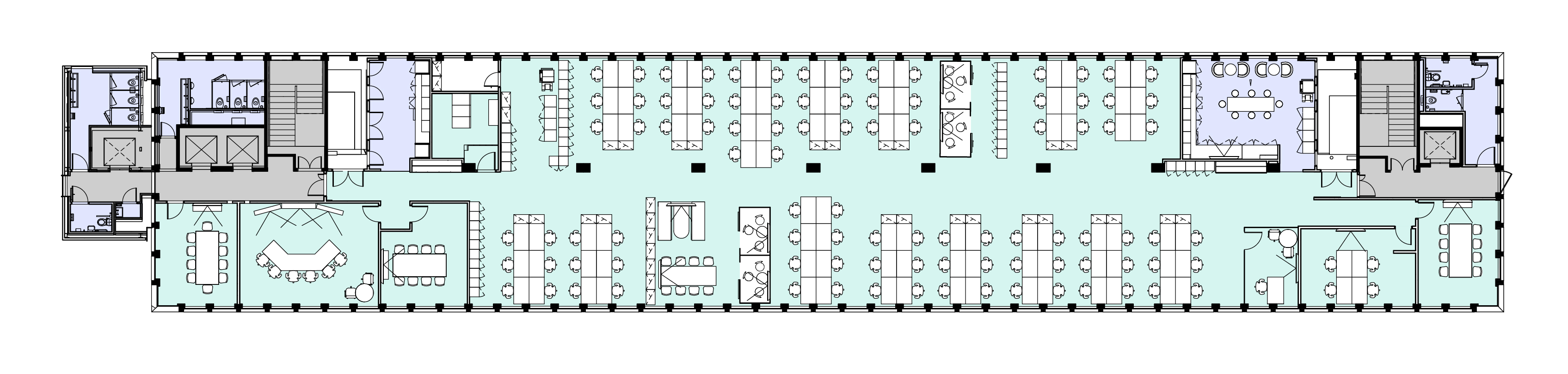 The floor itself benefits from c.80 desks, multiple meeting rooms, 2 kitchenettes, 4 pods and collaboration areas.