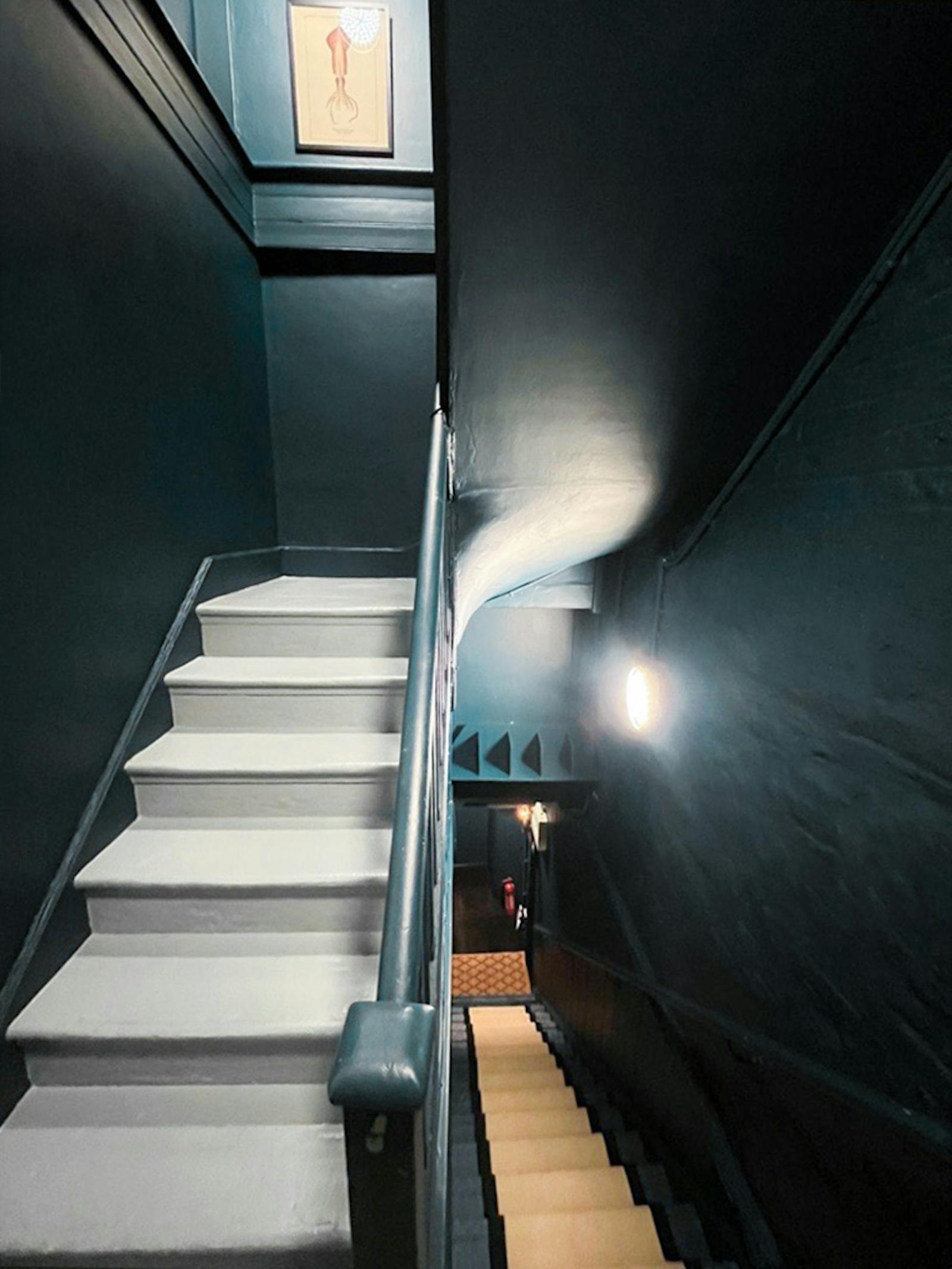 The common parts are currently being refurbished, with design references including a Hague Blue colour palette, subtle Art-Deco detailing, upgraded entrance lighting and a stair runner to the main stairwell (see image precedents).