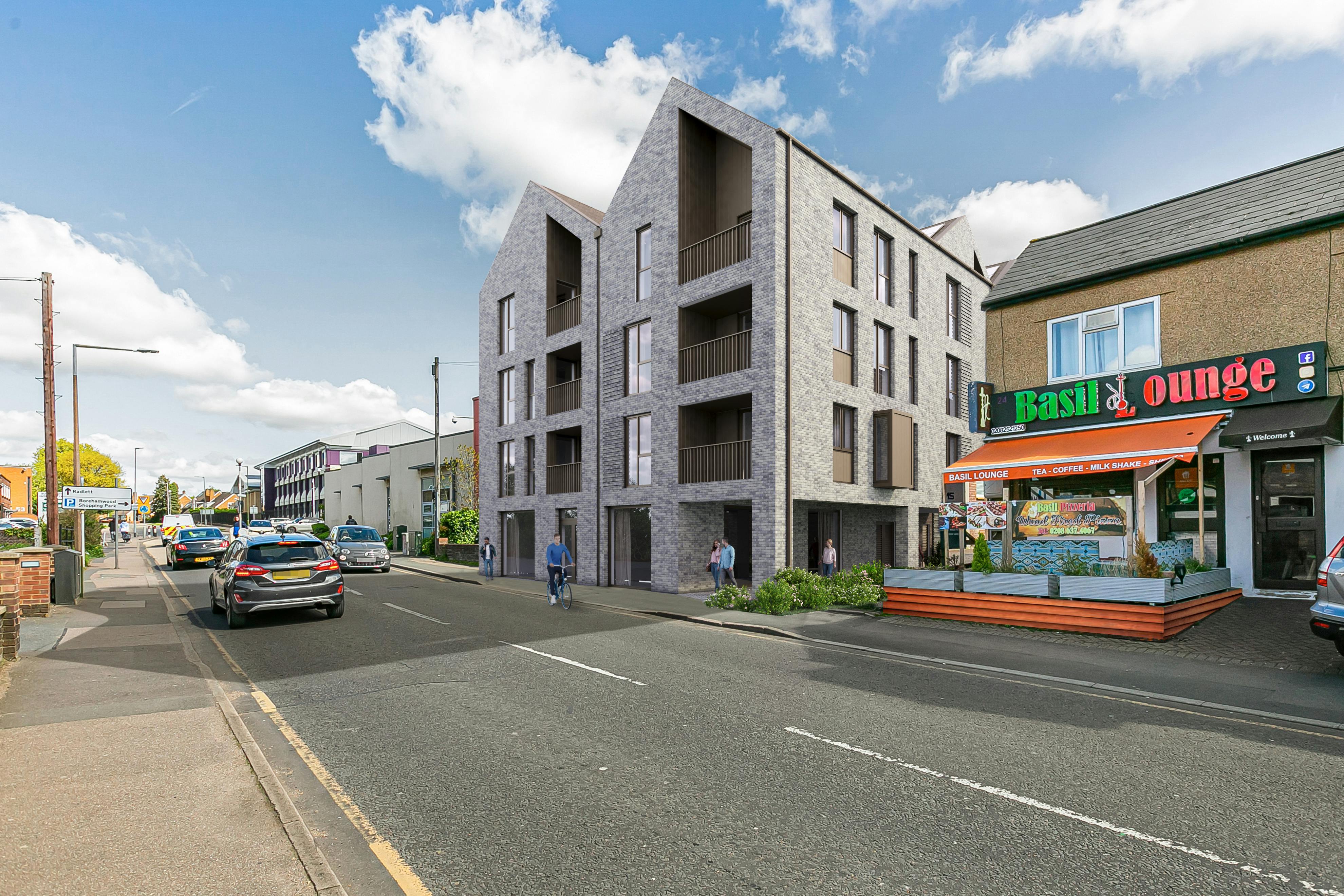 Detailed planning permission has been granted (Ref: 23/1775/FUL - Hertsmere Borough Council) to demolish the existing buildings and redevelop the site to create 41 apartments and commercial units (Class E) on the ground floor.
