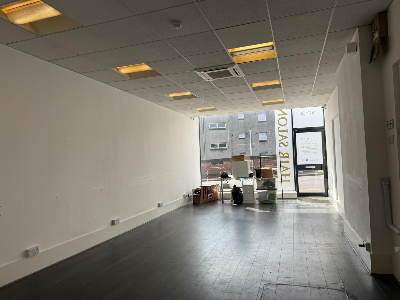 The property enjoys a prominent main road frontage to Station Road which incorporates an aluminium/glazed pedestrian entrance door together with two floor to ceiling display windows. Internally the subjects provide a main retail/salon area together with two former treatment rooms and a toilet facility.