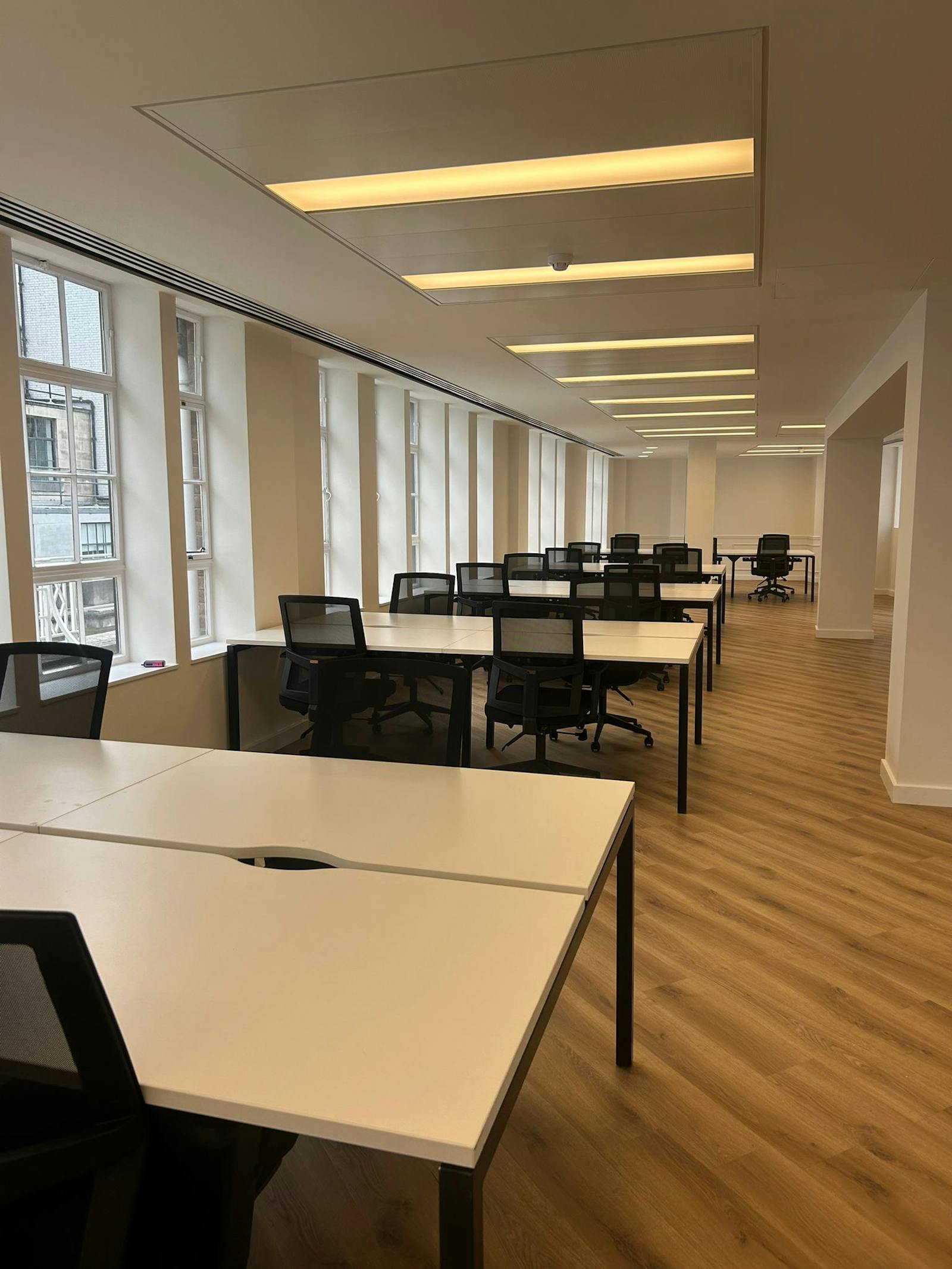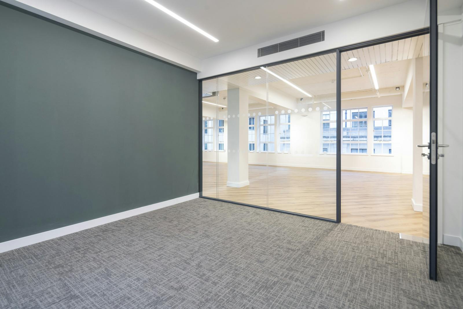 Each floor has been upgraded to a Cat A+ specification, offering fully fitted office space complete with stylish meeting rooms and integrated kitchen facilities—ready for immediate occupation. The floorplates are efficiently designed in a rectangular layout, with large windows on both elevations that provide excellent levels of natural light and the added benefit of openable windows, promoting natural ventilation and a more comfortable working environment.