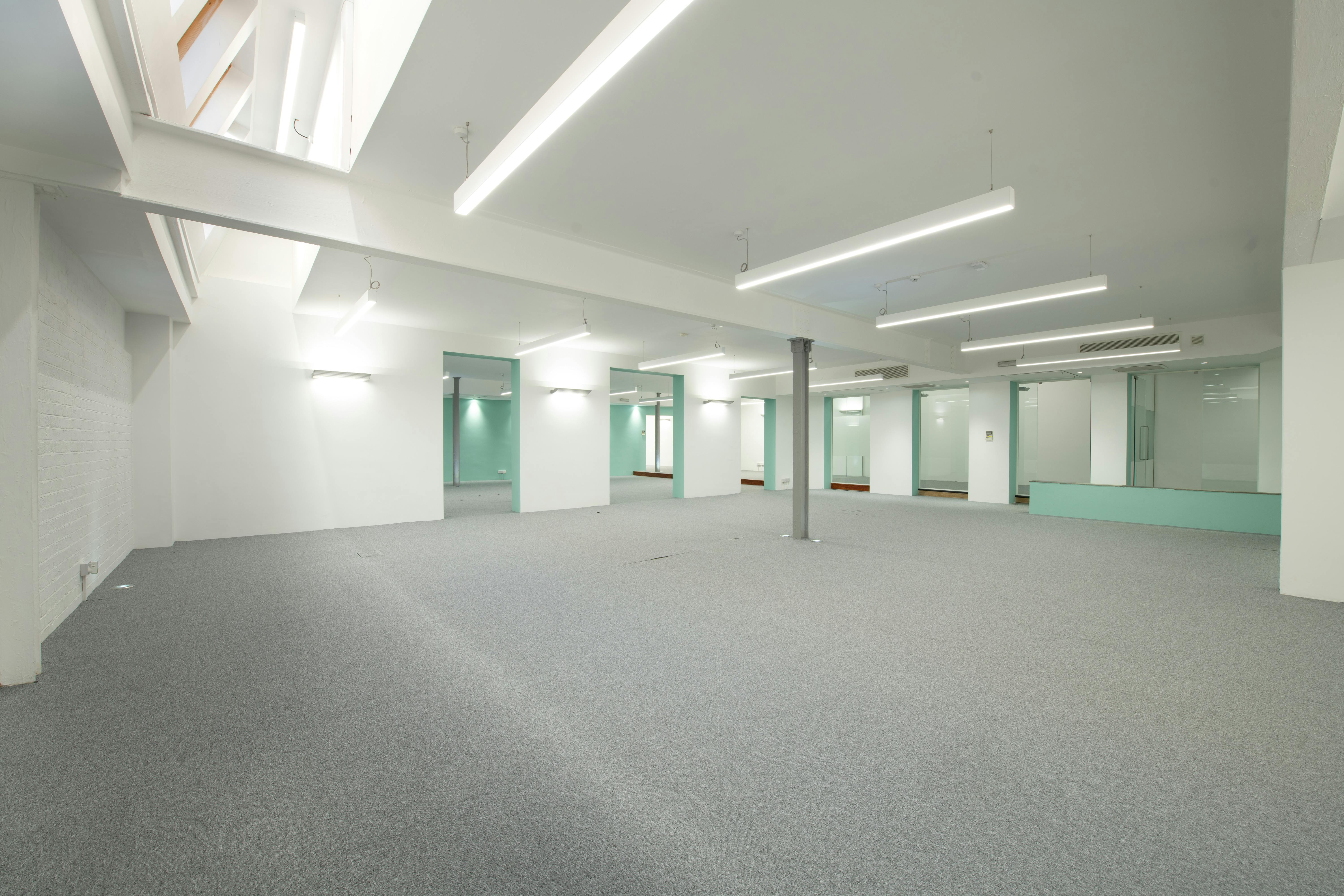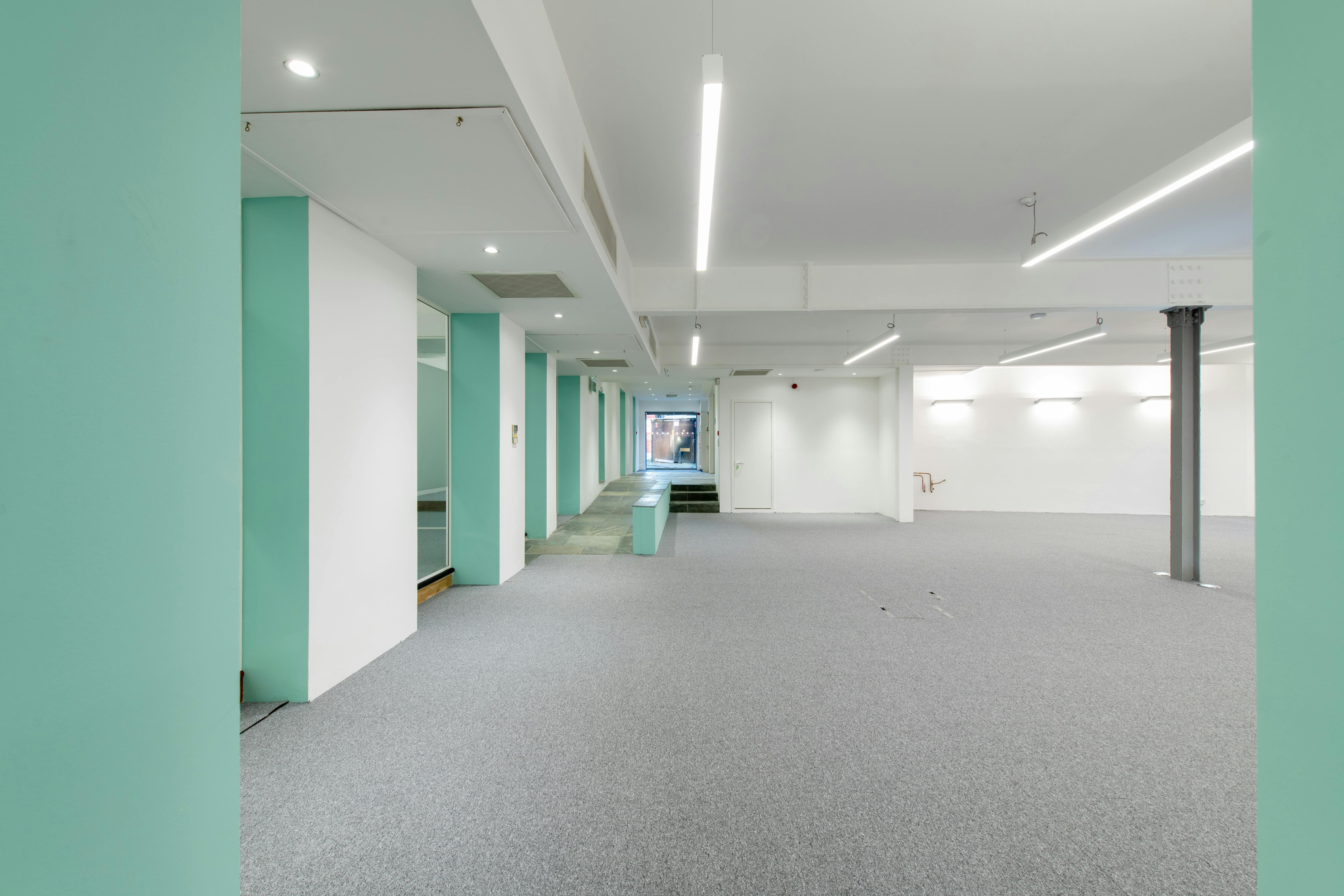 This architecturally reimagined former industrial building offers 7,570 sq ft of high-quality, modern office accommodation arranged over ground, first and mezzanine floors. Designed with flexibility in mind, the open-plan layout provides adaptable workspace suited to a range of occupier needs.