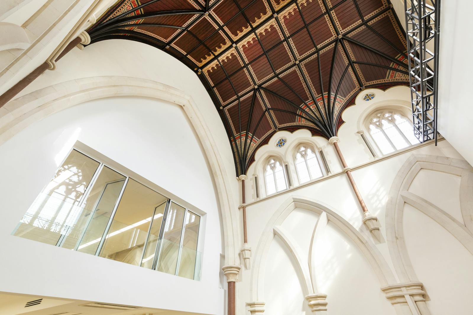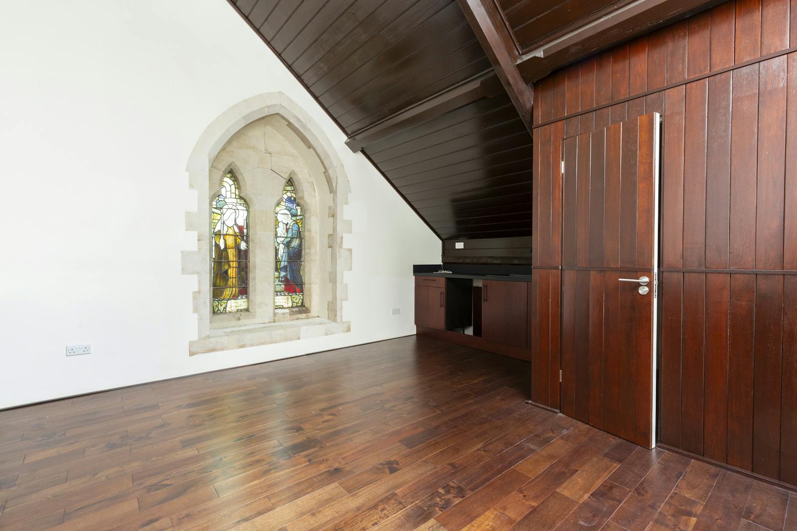 This distinctive commercial property is located within a carefully restored, Neo-Gothic church. Original architectural features have been retained, while the building has been upgraded to meet modern standards.