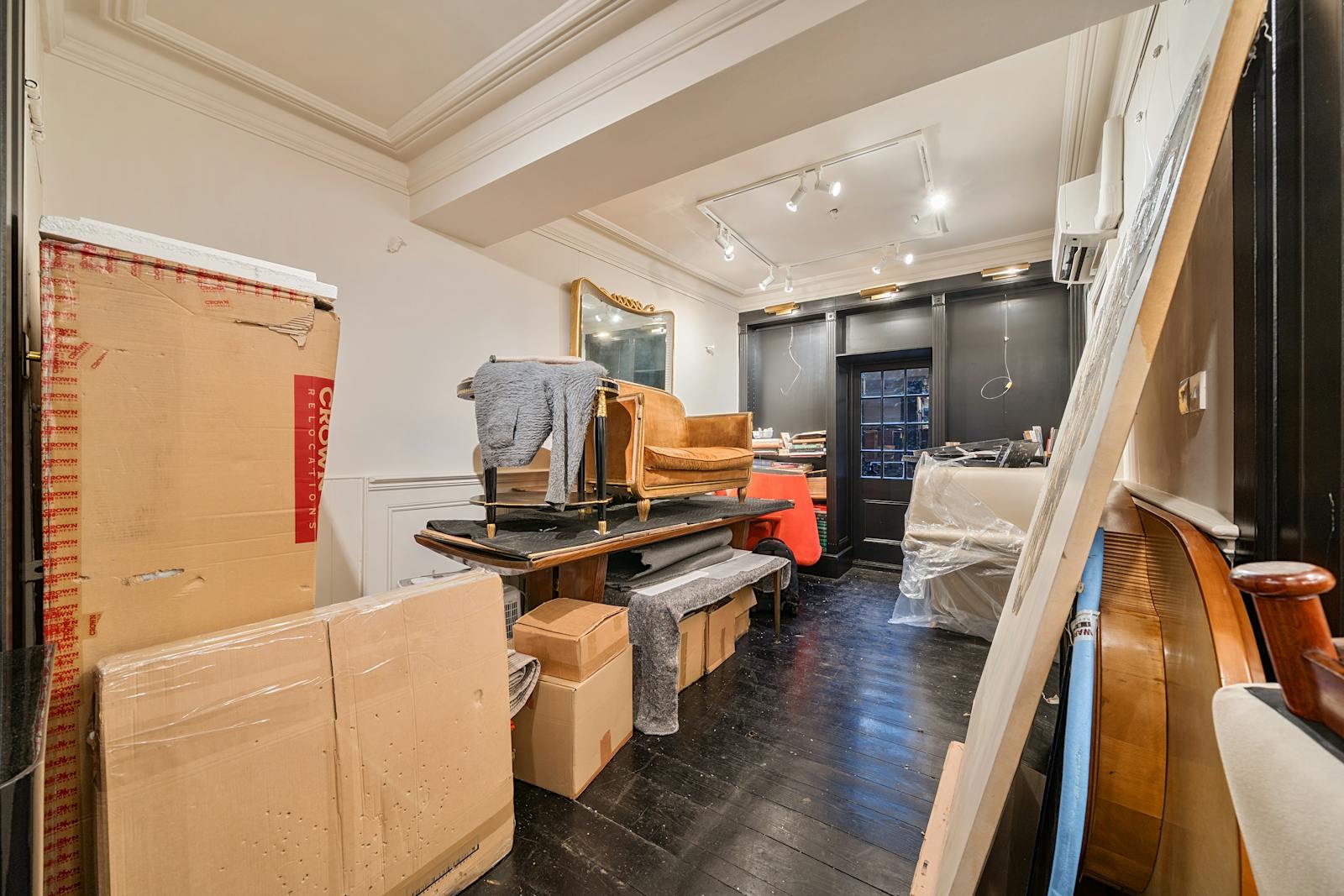 The total space is 781 square feet, divided over ground floor and basement. Including access to a rear courtyard/outdoor space.