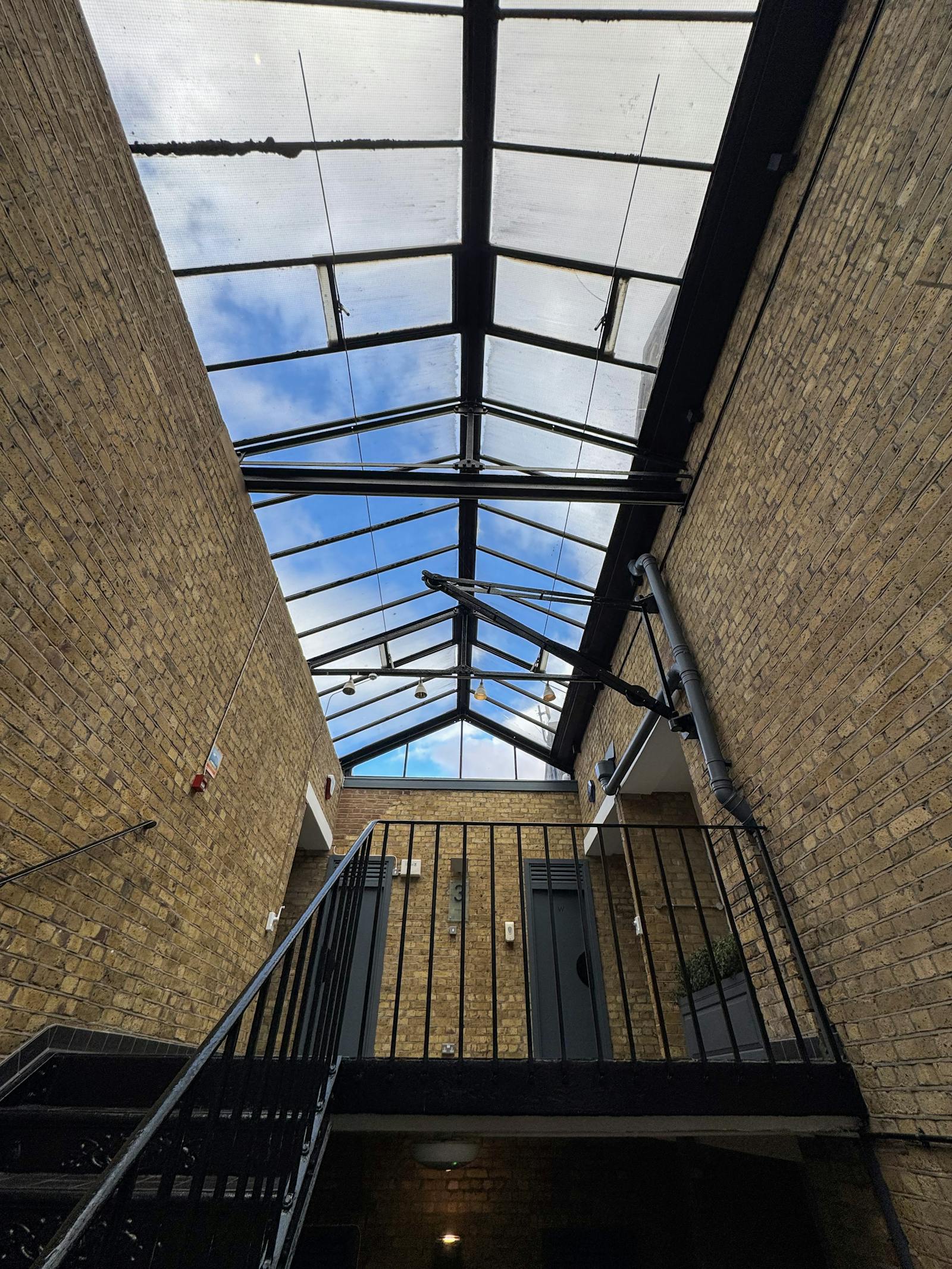 30 Gresse Street is a distinctive office building of significant character and heritage, originally constructed as a bottle factory in the 1800s and early 1900s before being thoughtfully converted into offices. The property is centred around a striking glazed atrium that connects the two original buildings, complemented by an impressive cast-iron stairwell that showcases the building’s industrial past.