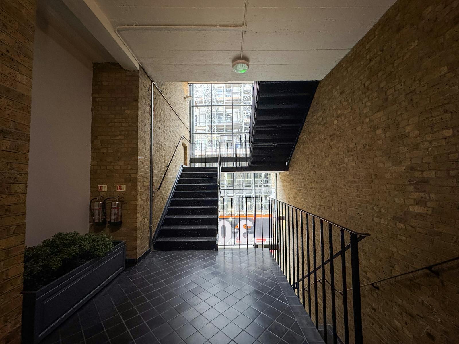 Exposed painted brickwork and generous ceiling heights create bright, airy and highly characterful workspace, well suited to creative, media and design-led occupiers.