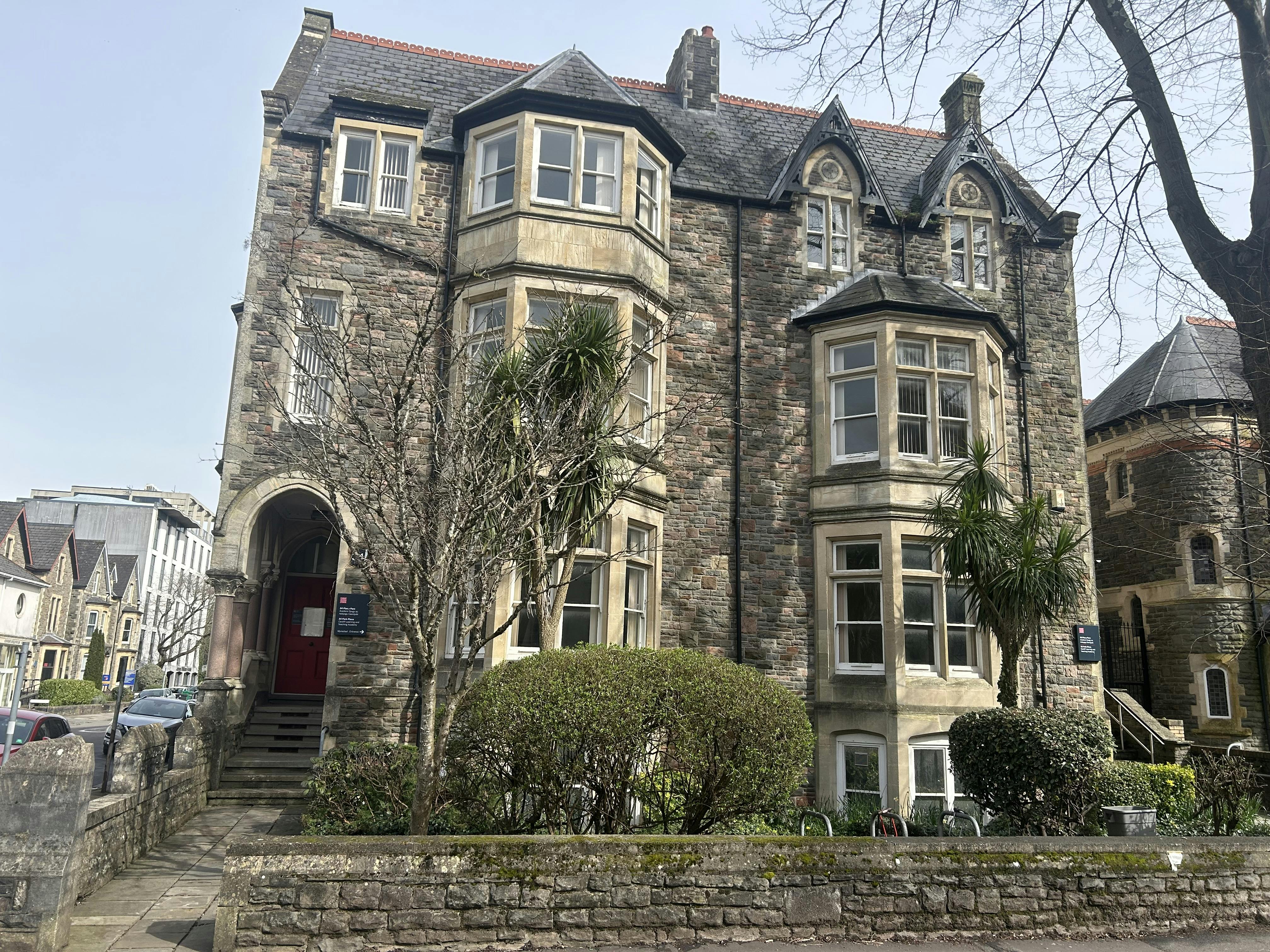 The building overlooks Cardiff Museum and the Gorsedd Gardens, with City Hall on the next block.
