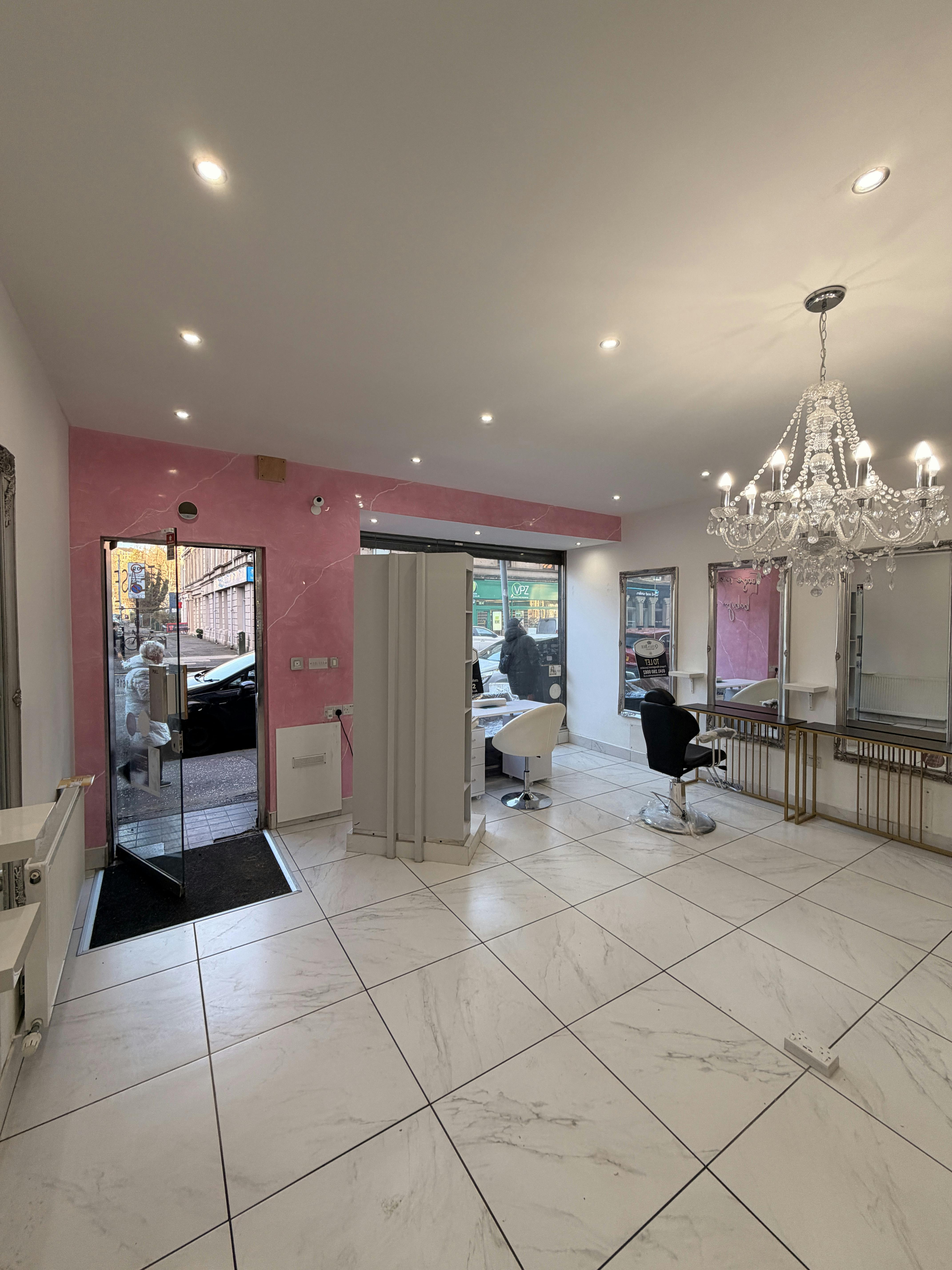 Internally, the sales area is open plan. The space is fitted out to a high standard as a beauty salon with tiled floor, plaster/paint walls and the ceiling incorporates LED spot lighting. There is a separate treatment room and to the rear there is a kitchen and WC. Space heating is provided via a gas fired boiler / radiators.