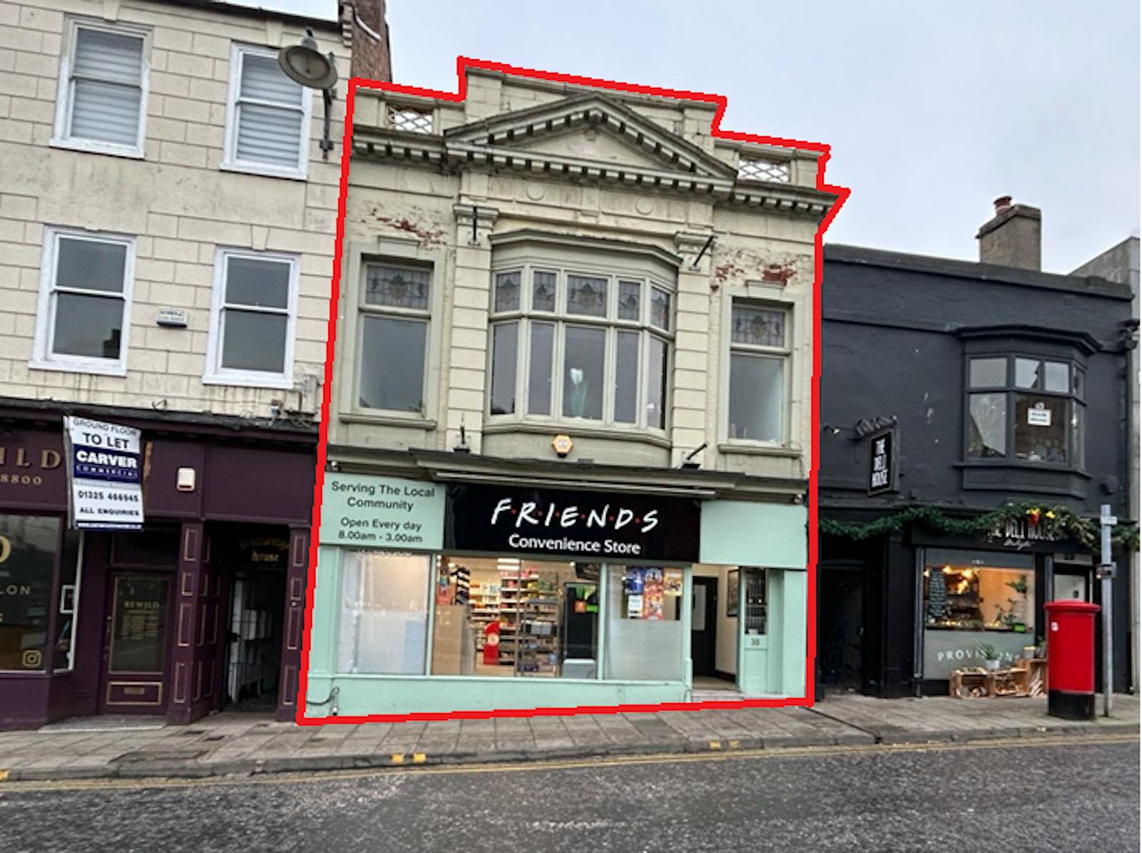 The ground-floor retail unit is occupied by F.r.i.e.n.d.s Convenience Store, producing a passing rent of £24,000 per annum.