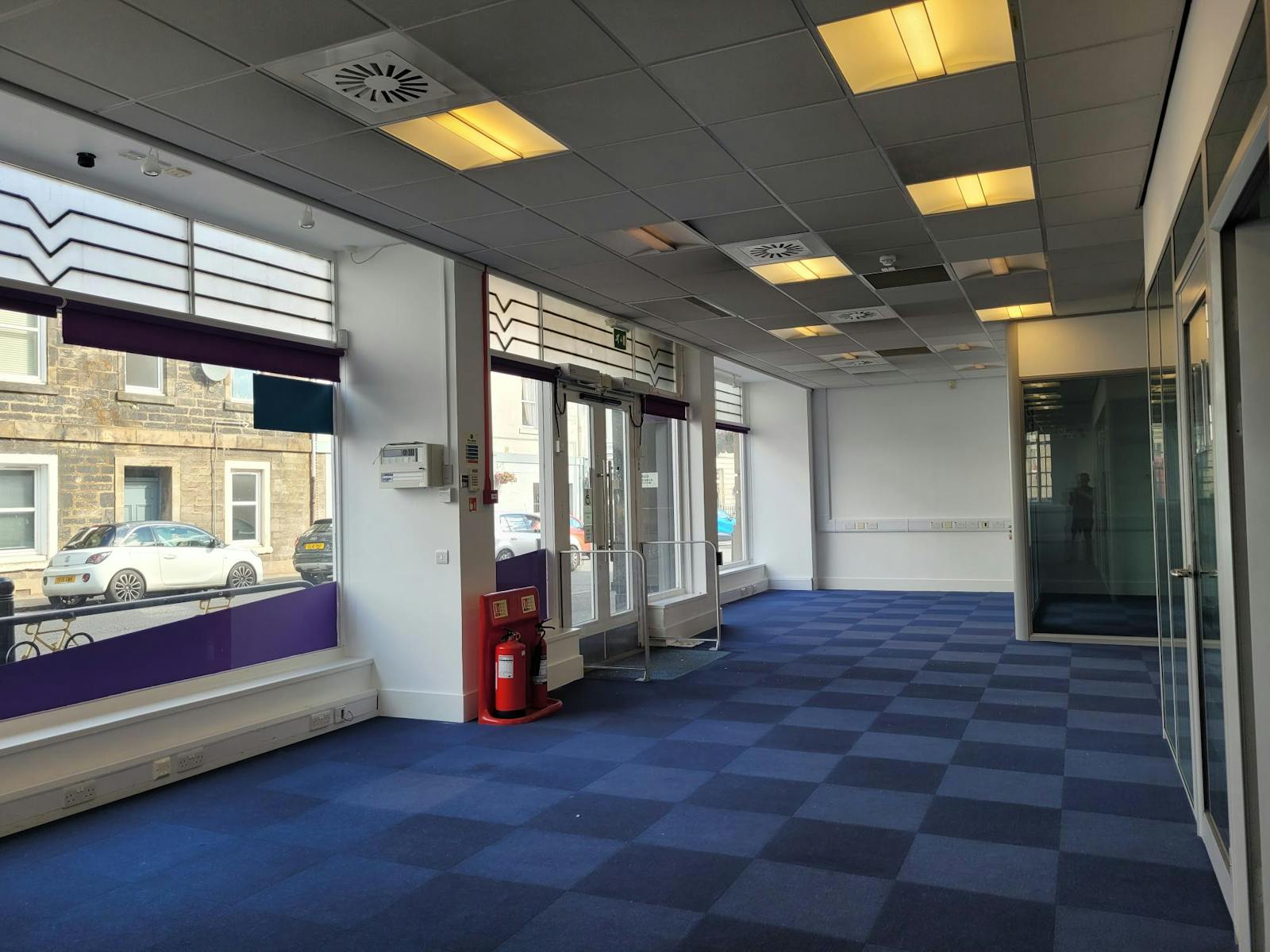 The subjects comprise retail/office premises arranged over the ground floor of a mid-terraced, two storey property which we have assumed is of stone construction contained under a flat roof which we have assumed is clad in bitumen‚s felt or a similar type material The retail frontage to Bank Street comprises double timber/glazed entrance doors together with a series of timber framed display windows. The entrance doors are electrically operated for DDA purposes. Internally the subjects are arranged to provide a main office area together with a kitchen and two toilet facilities. Various private offices/meeting rooms have been formed within the main office, these sections being largely of demountable partitioning.