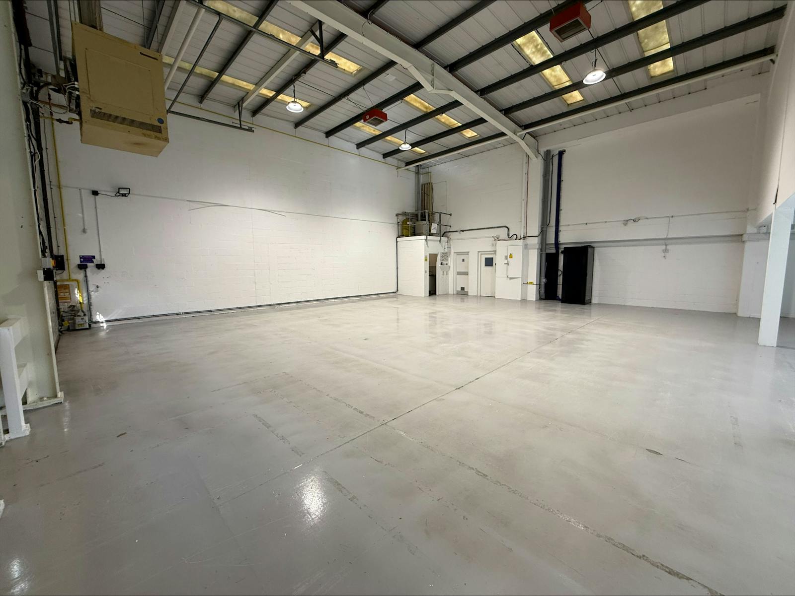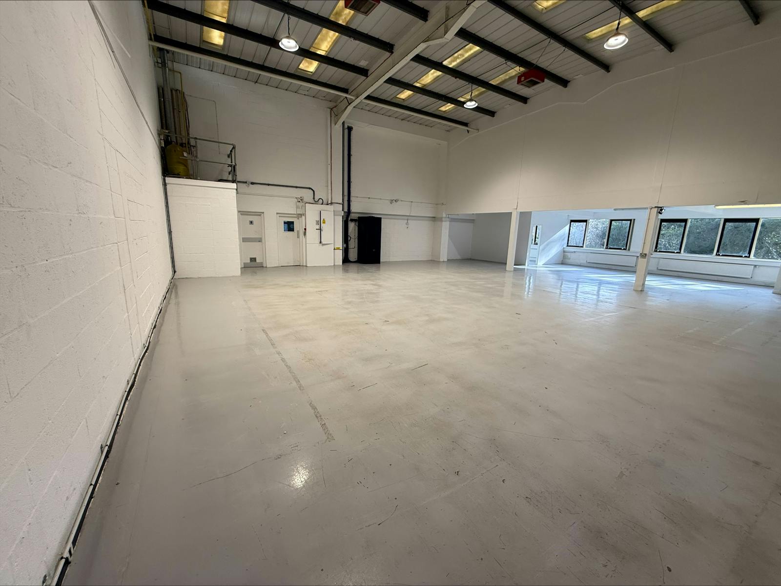 A modern steel portal frame unit with full height warehousing accessed via a large shared yard to the rear. There are 2 storey offices to the front of the building.