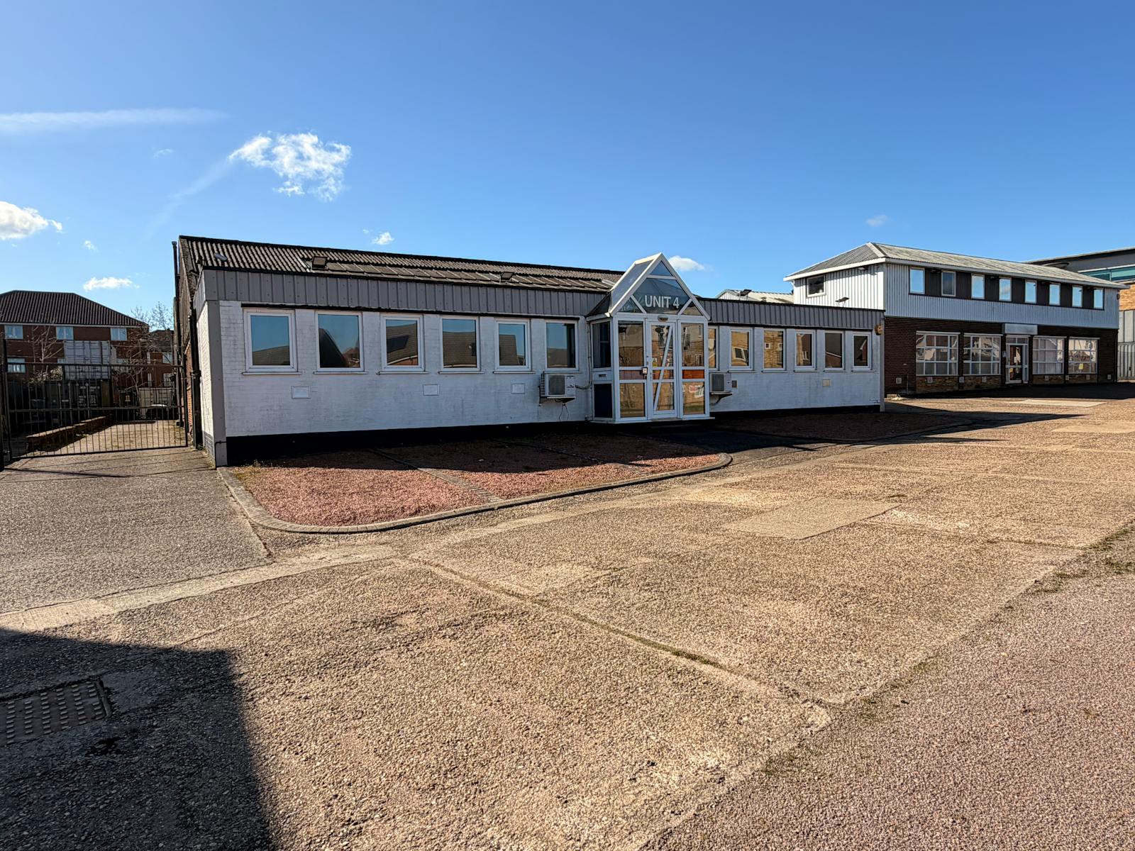 A self contained warehouse unit with ground floor offices fronting Aerodrome Way with parking to the front.