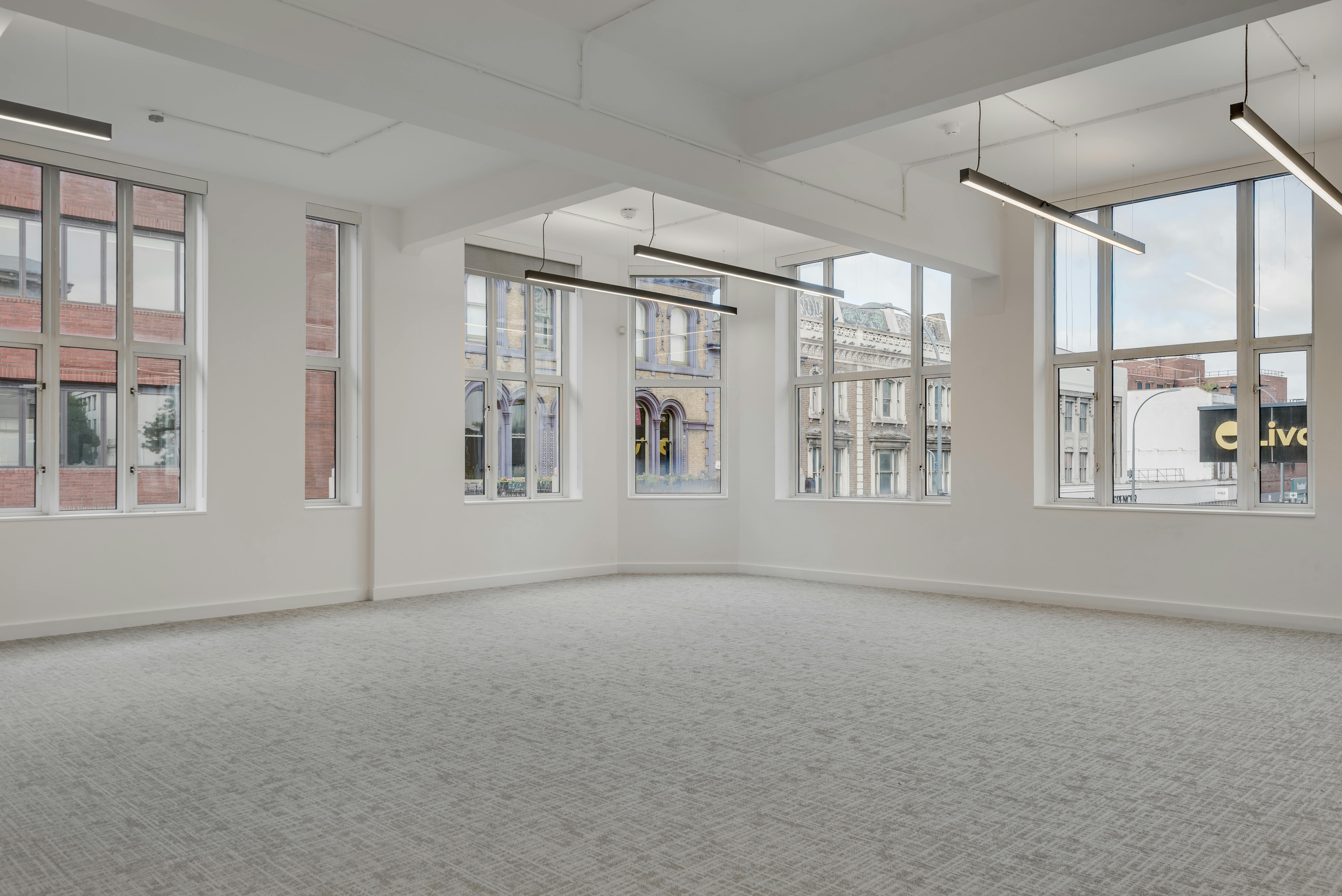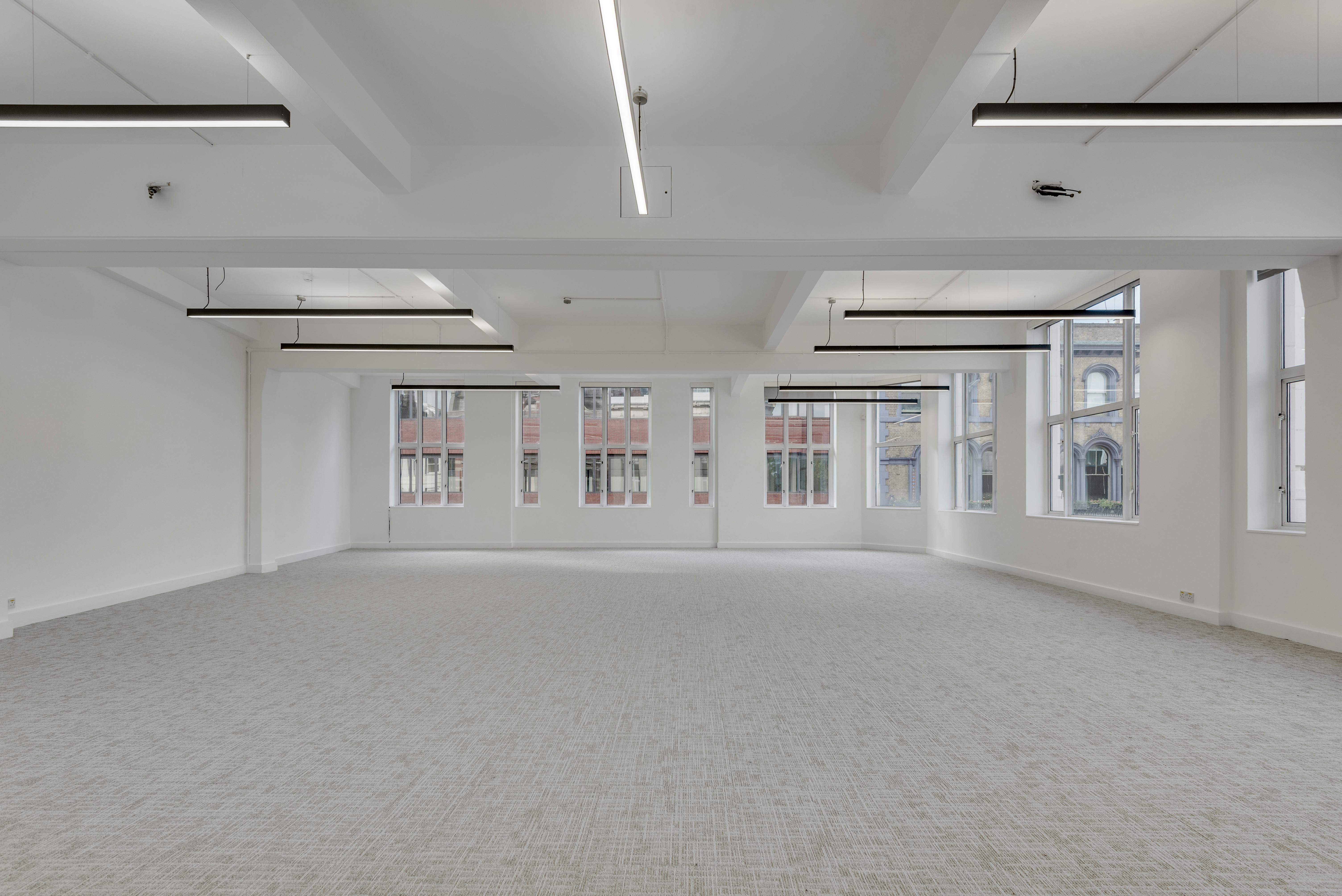 Following a recent refurbishment, the first-floor suite at 4 Lyric Square now features brand-new carpeting, upgraded lighting, and fresh internal finishes throughout. A sleek, modern kitchenette has been installed, complementing the generous glazing that floods the space with natural light. Combined with its prime central location in Hammersmith, this is a turnkey office designed to elevate both image and functionalitys.