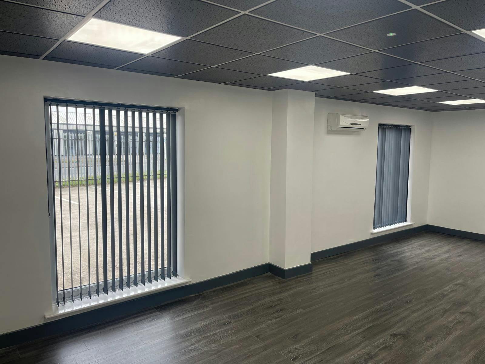 nternally, the office accommodation is divided into a reception area, modern kitchenette, meeting/board room and cellular offices. The specification includes perimeter trunking, air conditioning, heating and LED lighting. In addition there is a mezzanine space for basic storage purposes.