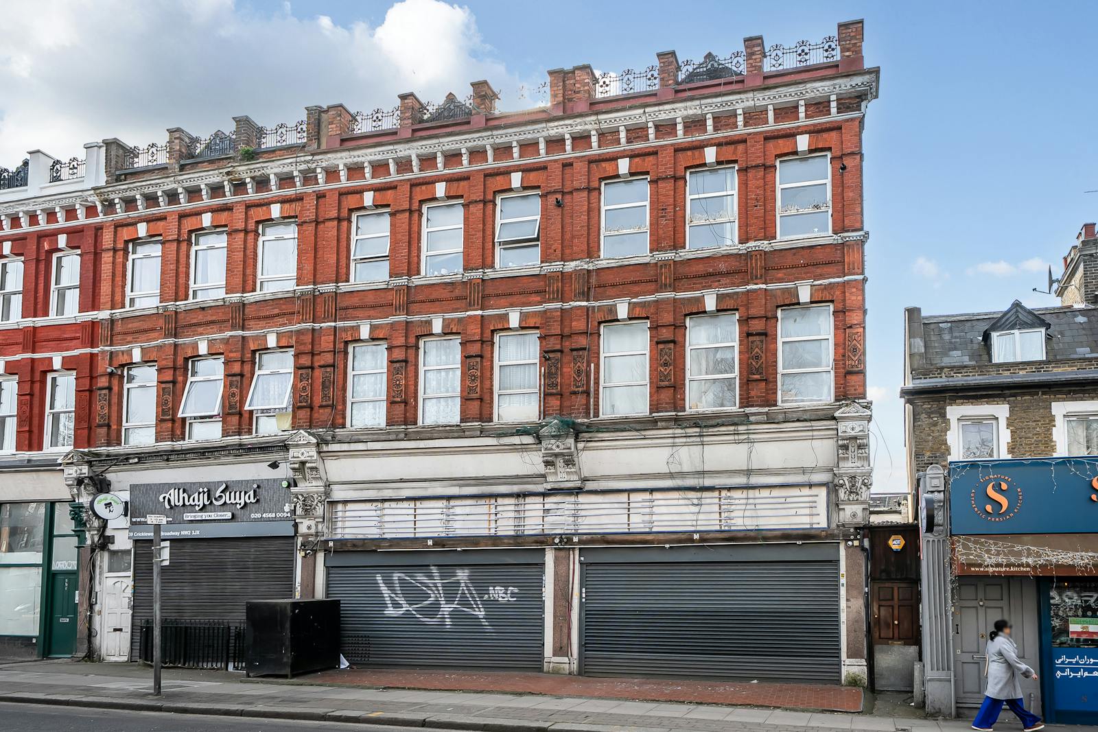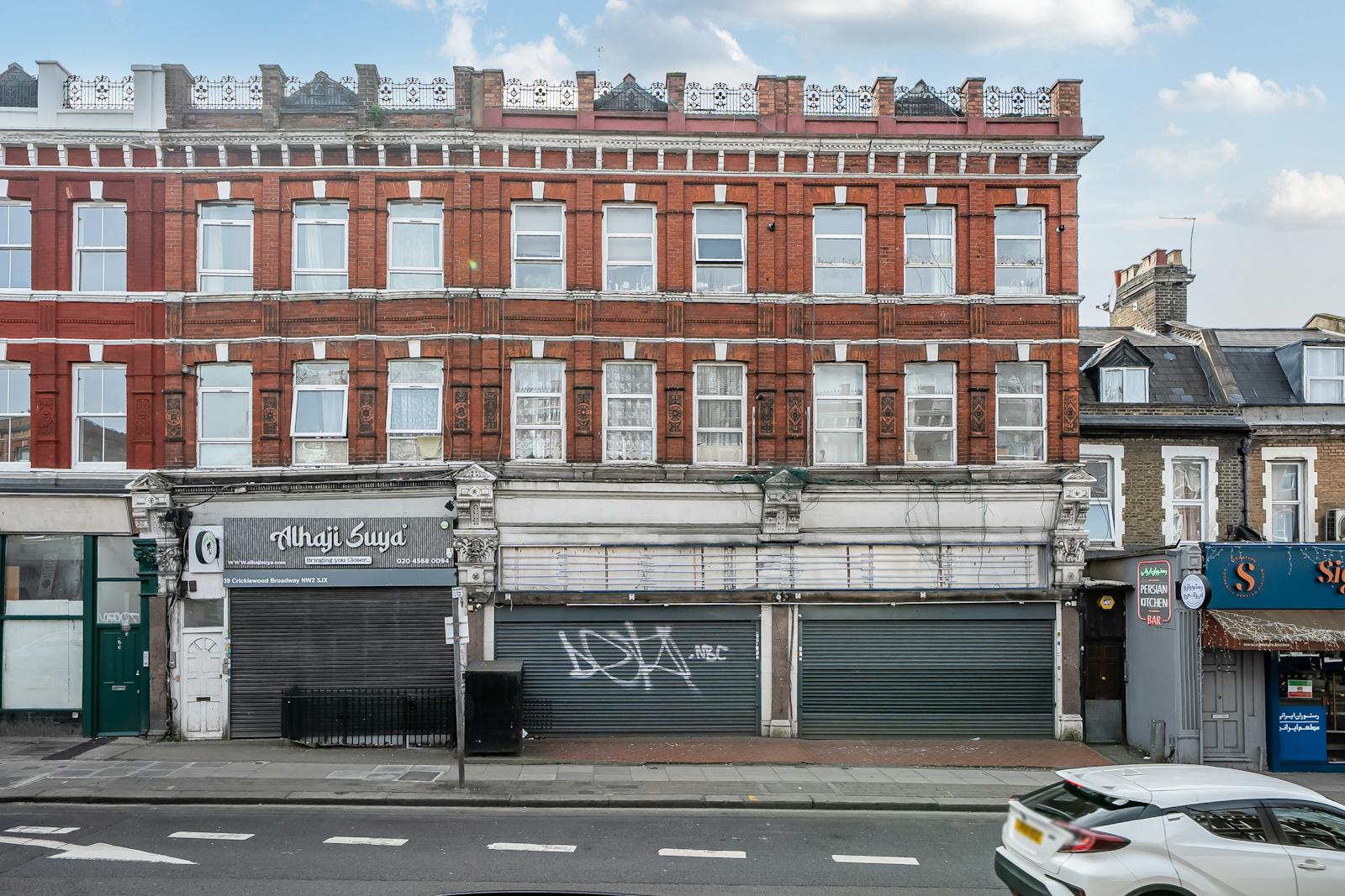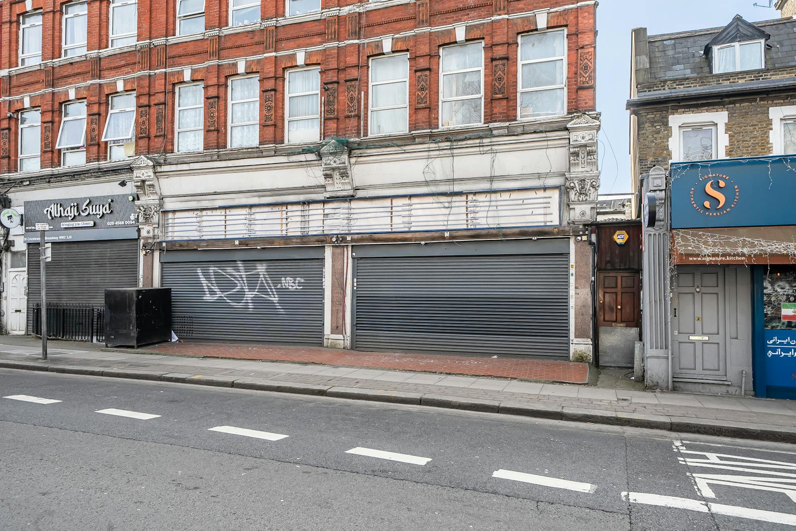 The premises are situated at the southern end of Cricklewood Broadway shopping centre located on the western side of the thoroughfare close to Walm Lane and Rondu Road.