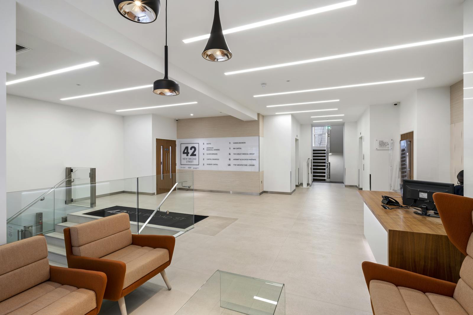 42 New Broad Street is ideally located on the northern side of New Broad Street, in a prime position in the heart of the City of London. The street is an attractive, pedestrianised area that runs parallel to Liverpool Street and London Wall. This highly sought-after location offers excellent access to London Wall, Moorgate, Liverpool Street, and Bishopsgate.