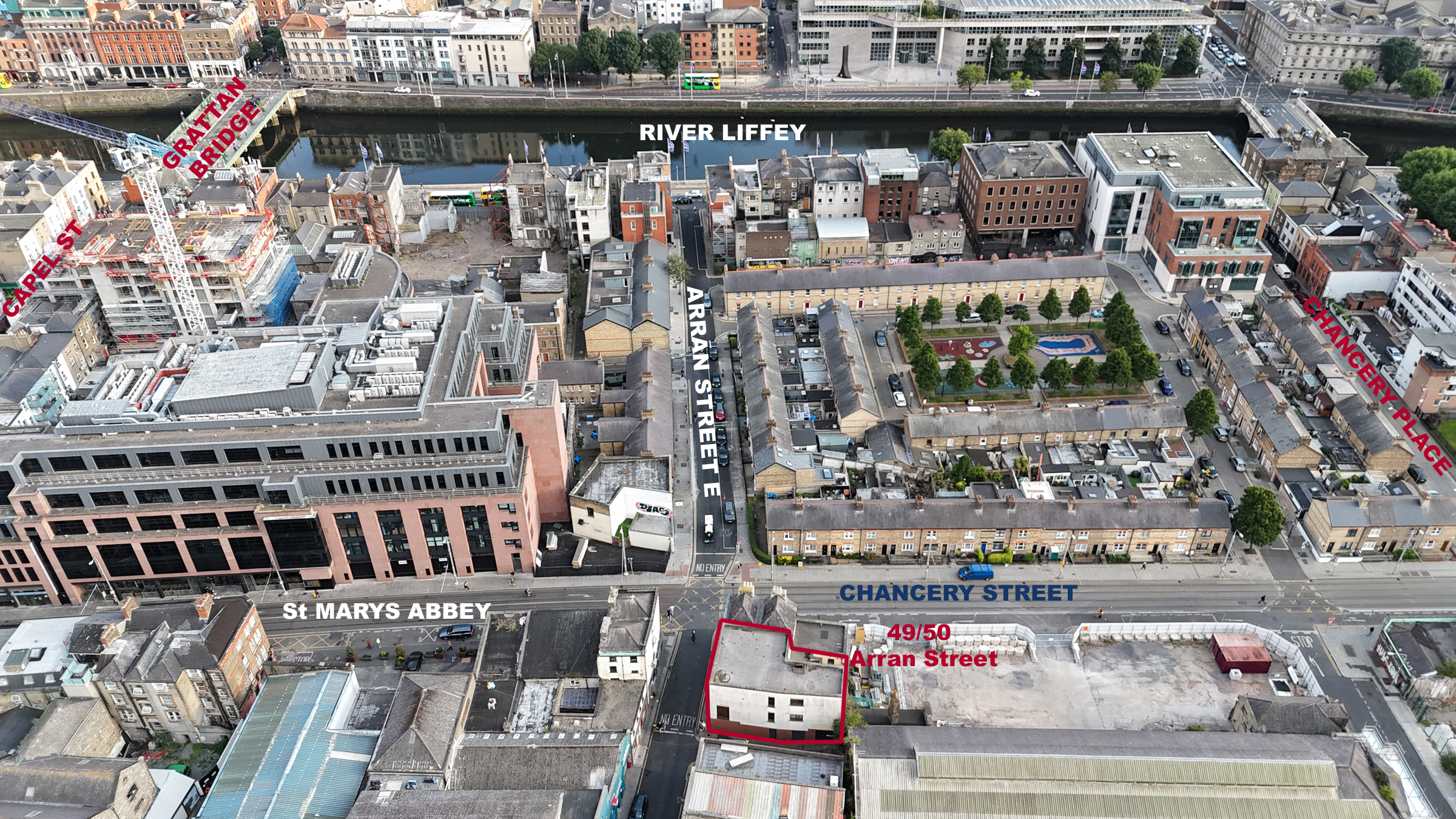 The property is situated on Arran Street East, close to the junction of Chancery Street and Mary’s Abbey, on the north side of Dublin City.