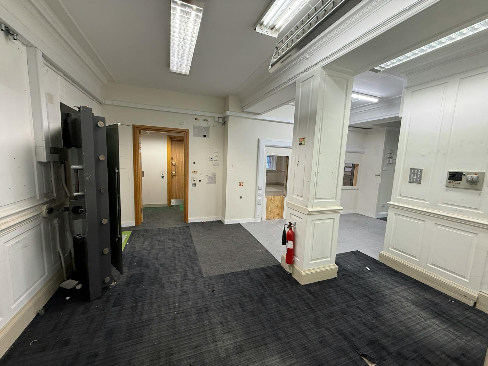 The property comprises a part three, part two storey Grade II Listed building constructed of traditional brick under a pitched slate covered roof. The property is laid out to provide a ground floor banking hall with associated offices and strong room. The first and second floors are set out as individual offices and staff areas with access by either of two wooden staircases. A separate access door from The Square has enabled the upper parts to be sub-let in the past. The property also benefits from a small rear car parking area accessed via Park Road and Central Car Park.