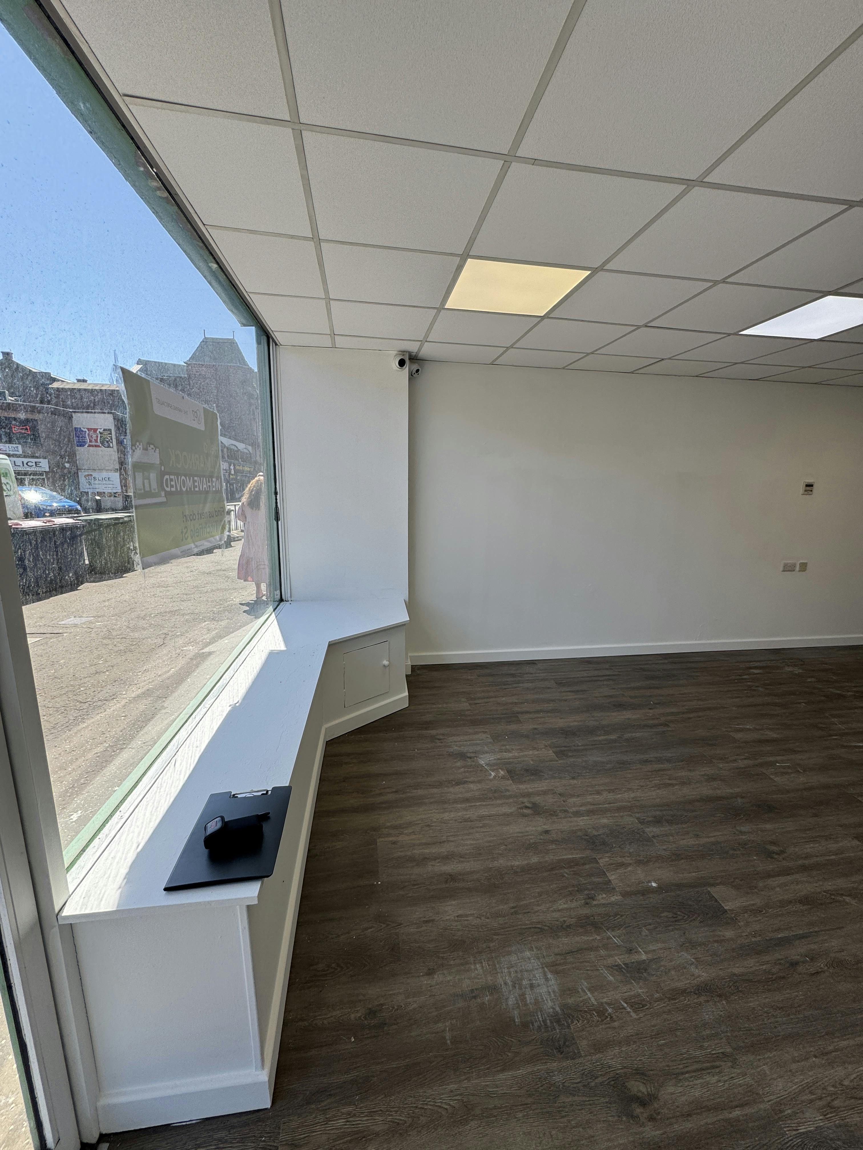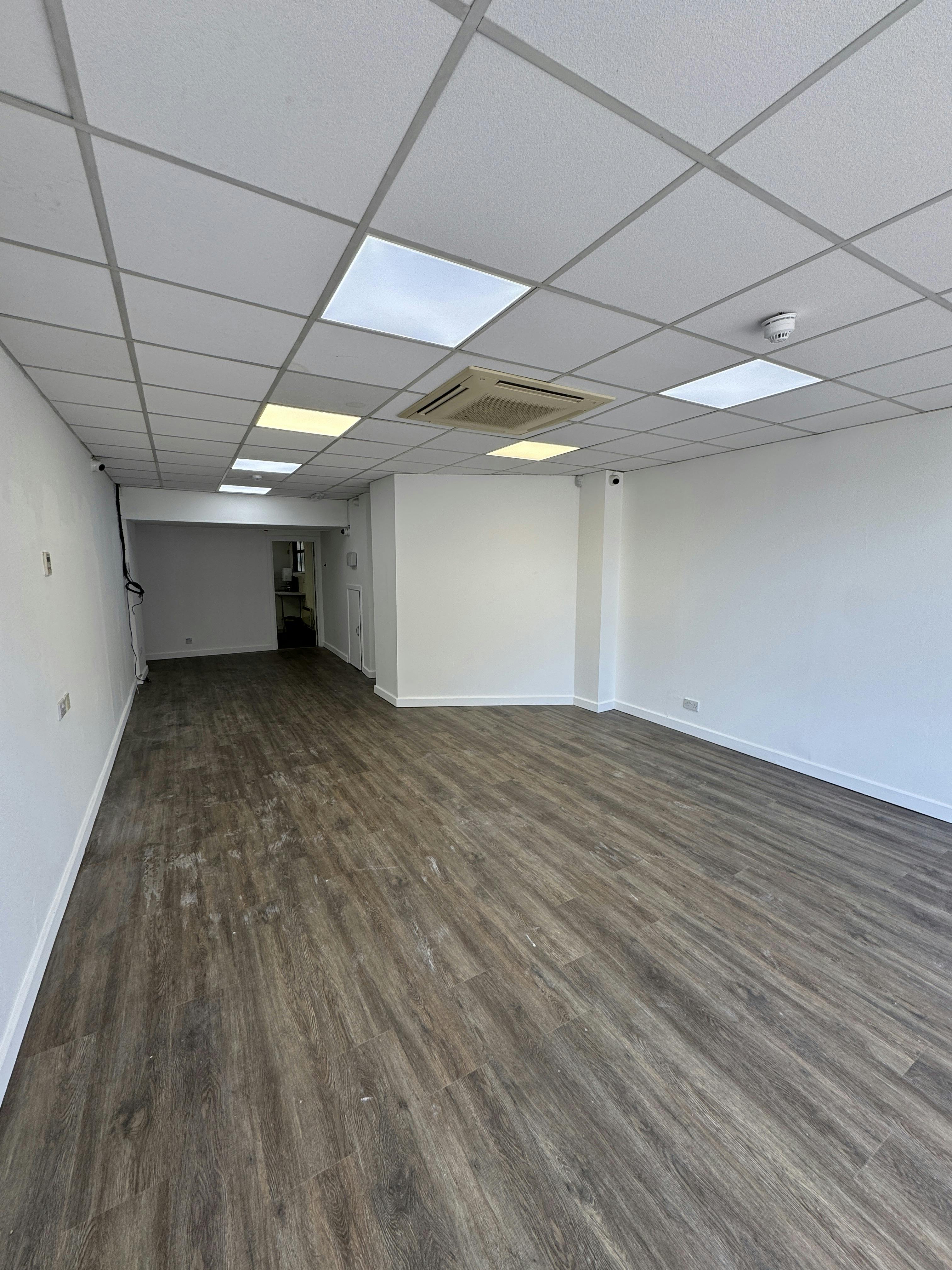 Externally, the shop has a single glazed frontage under a non-illuminated fascia board and is accessed via a single pedestrian door which leads into the sales area. The floor is covered in laminate and the walls are of plaster/paint. The suspended grid ceiling incorporates LED box lighting. An office, kitchenette and staff welfare facilities are provided to the rear of the shop. Space heating will be provided electrically.
