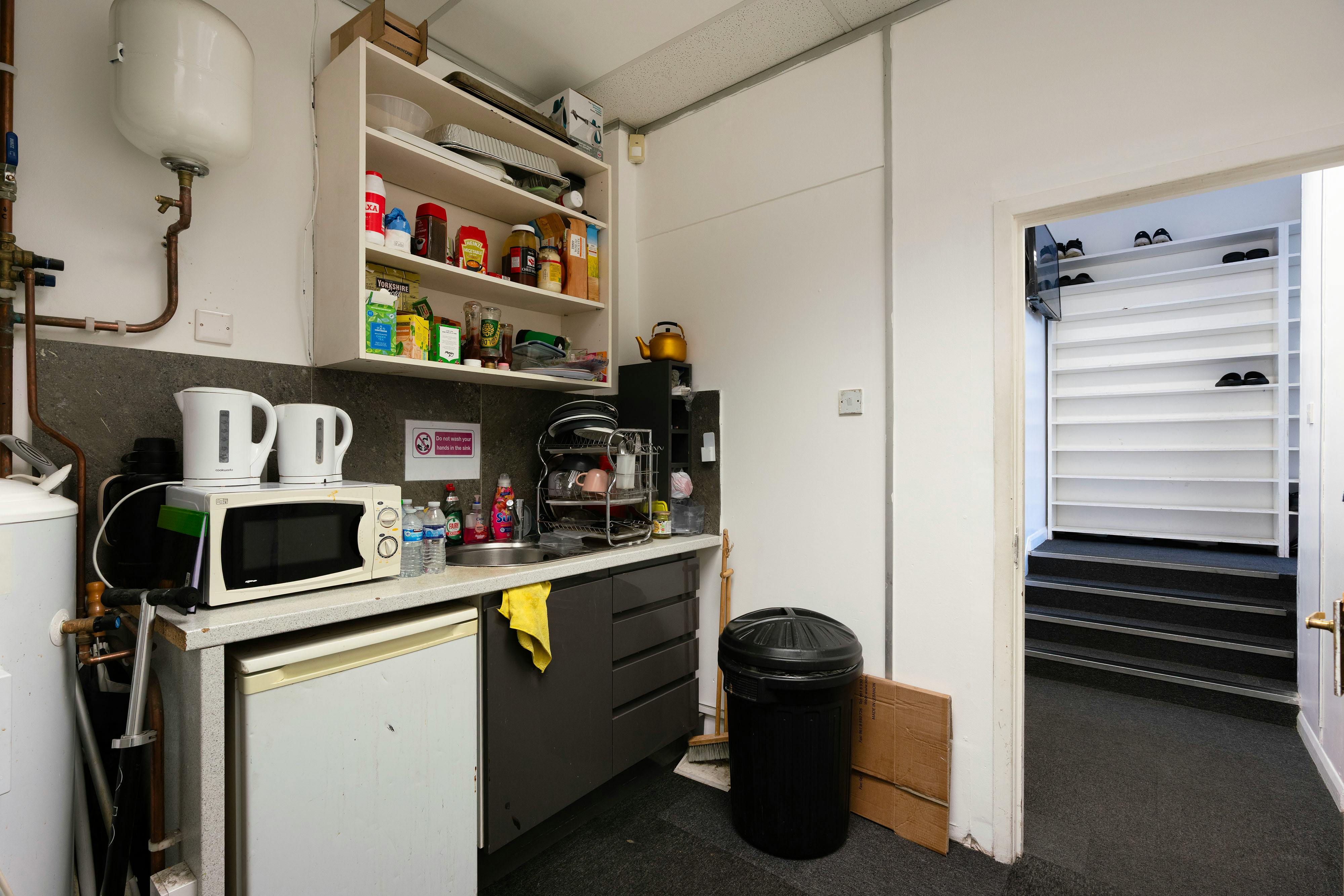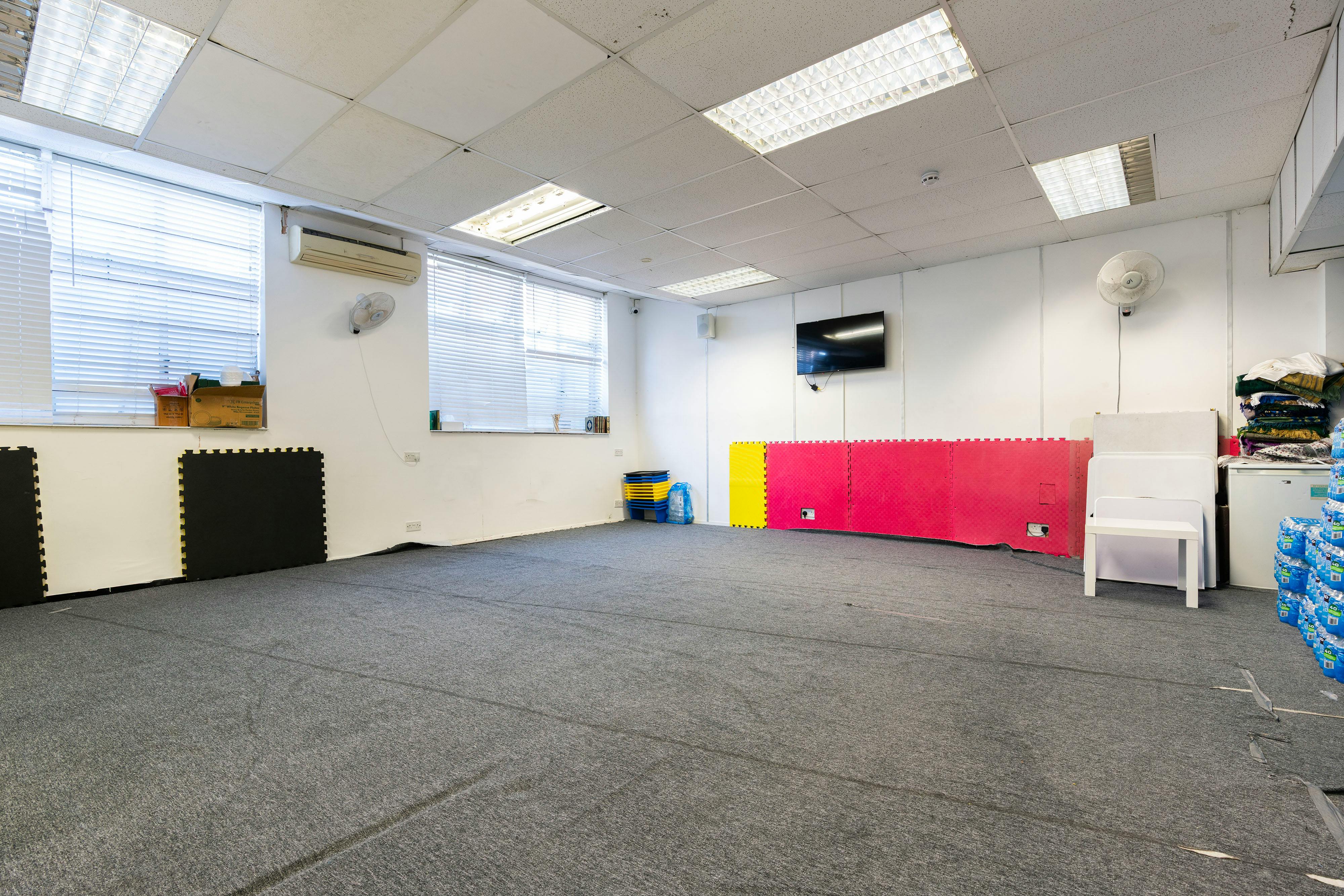 The property is currently arranged as two sections via lightweight partitioning, with the front area used for office/religious purposes and the rear retained as warehouse/industrial space. The partitions can be easily removed, allowing the property to be reinstated as a predominantly open warehouse/industrial unit.