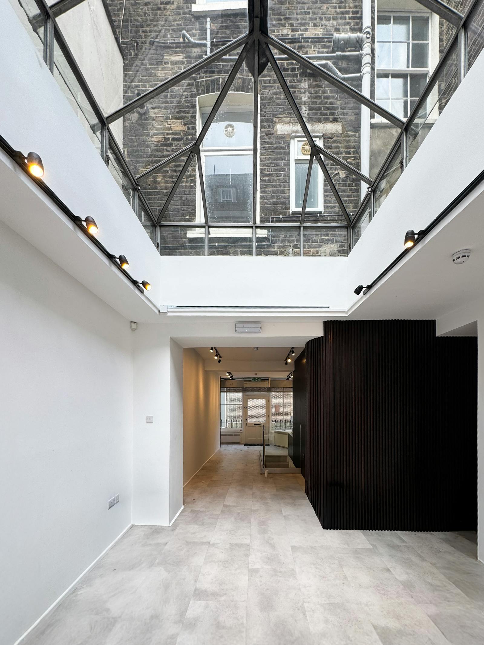 This self-contained ground and lower ground showroom has been recently fitted to an excellent standard. The premises benefit from new LVT flooring throughout, two WCs, kitchenette, comfort cooling (not tested), and a striking ground floor skylight that delivers fantastic natural light.