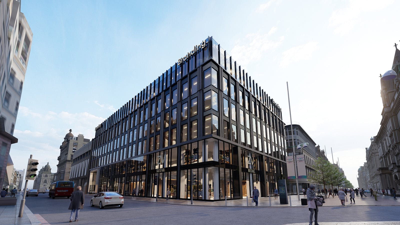 Superior location at the corner of Buchanan Street and West George Street, in Glasgow’s main retail district.