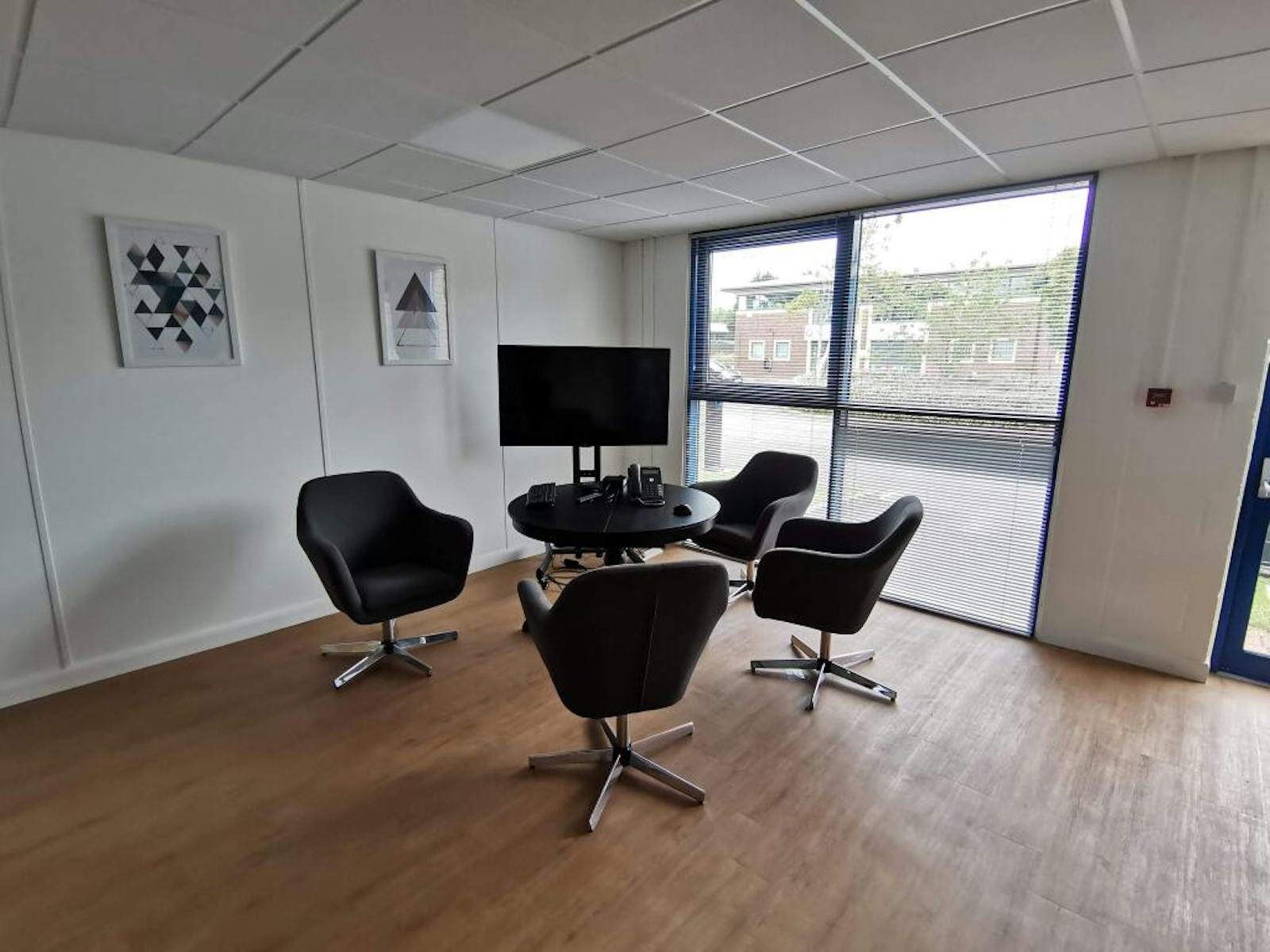 partition meeting rooms. Heating and cooling for this unit is provided by an efficient air source heat pump.