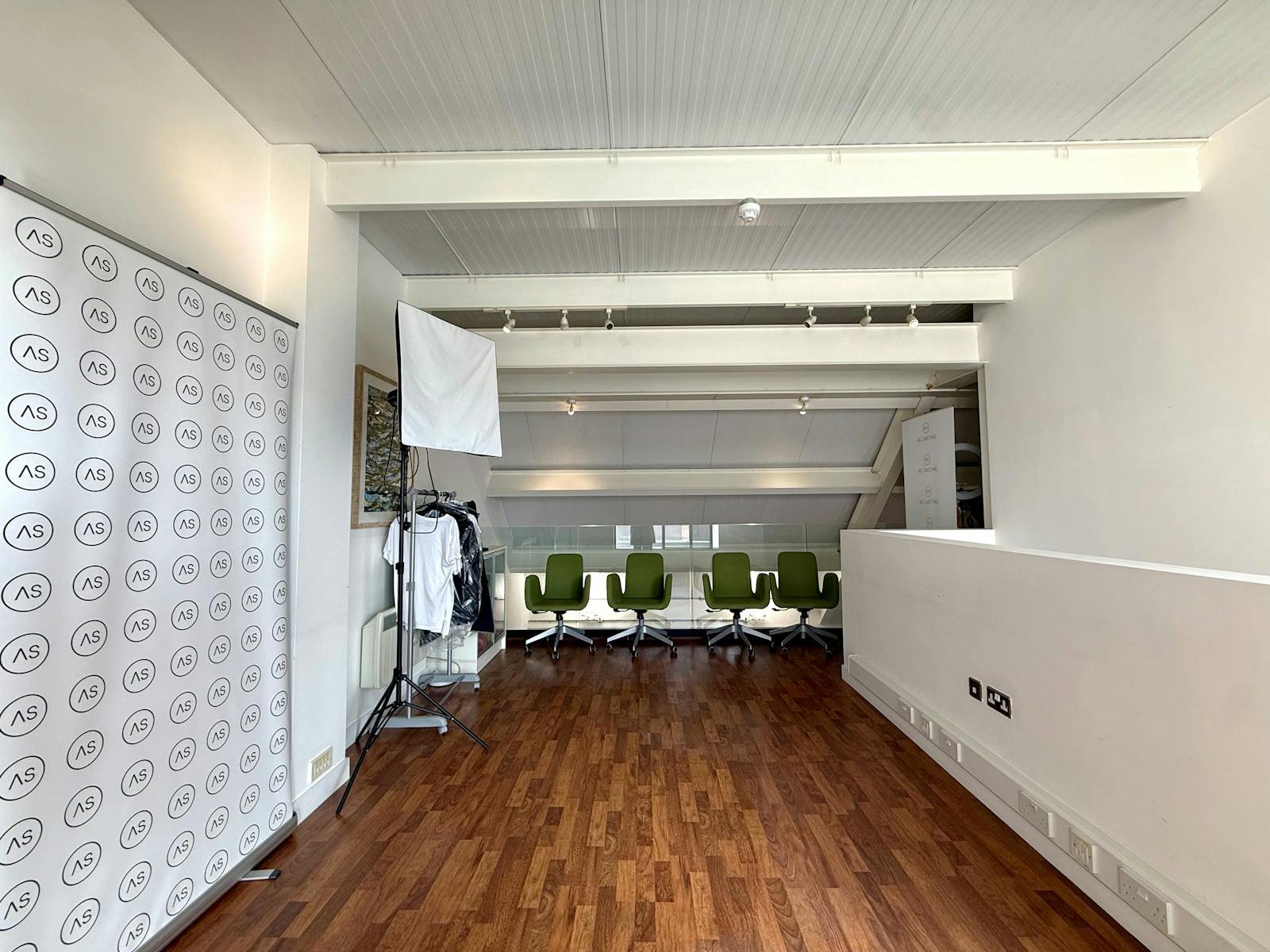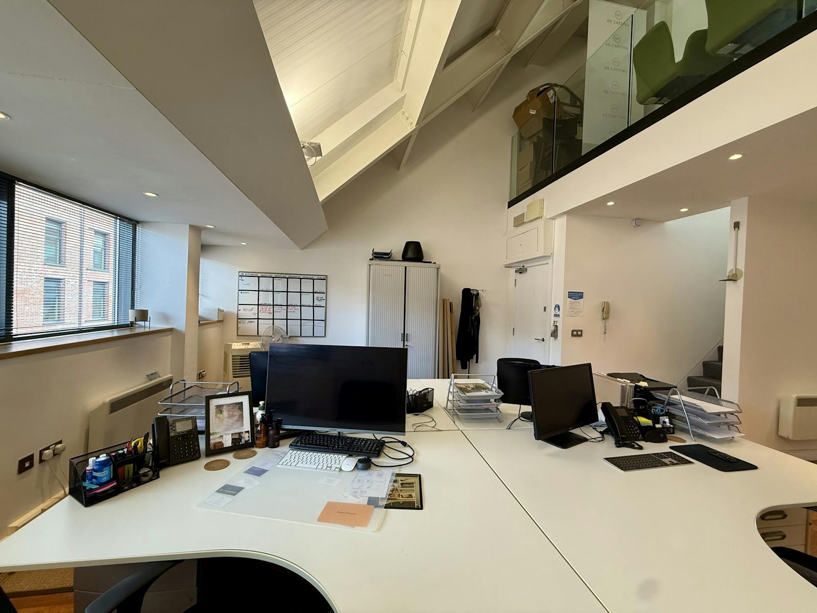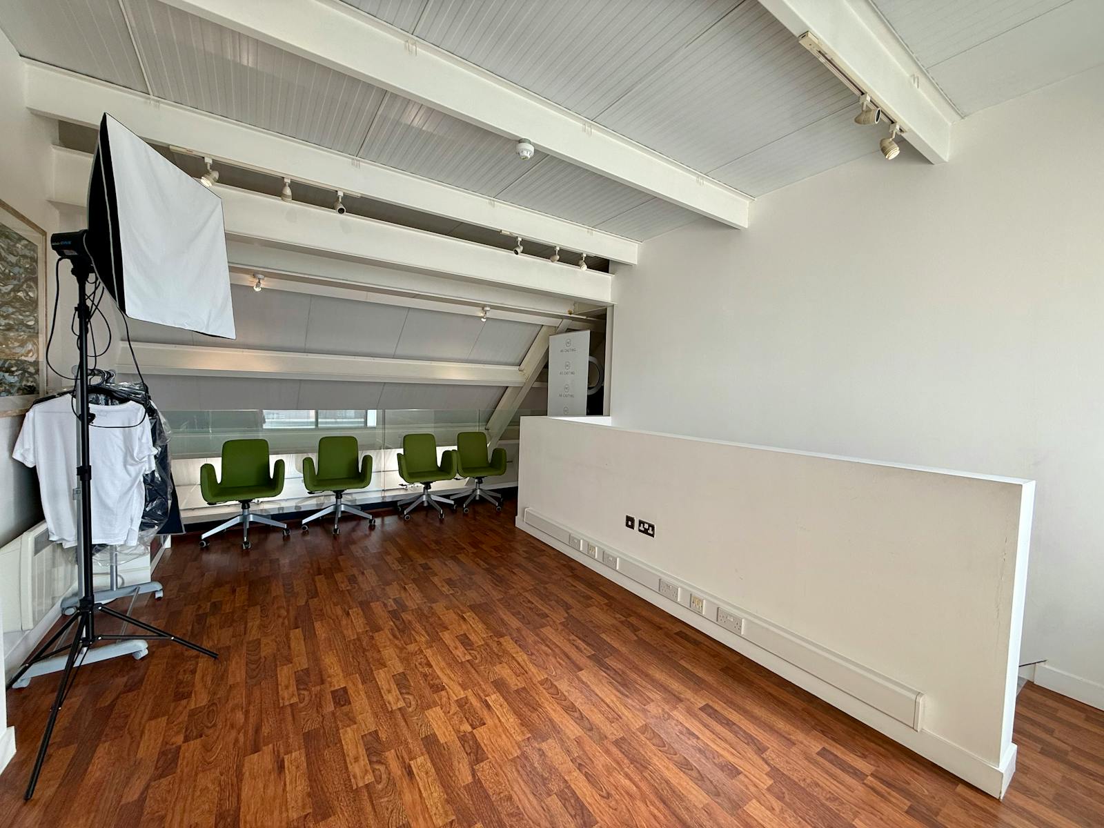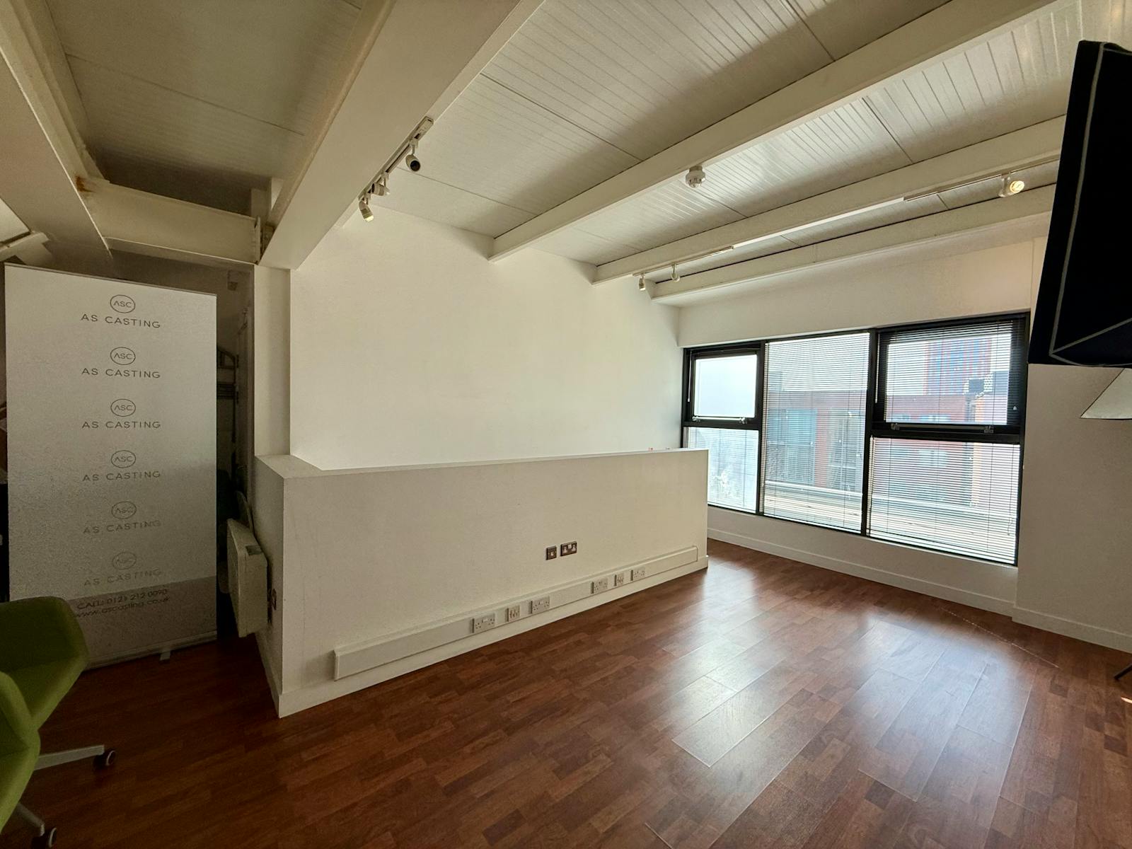 Stairs lead to the upper mezzanine level, which provides a further large open plan office area. This level also benefits from a secondary access point leading back into the communal stairwell.