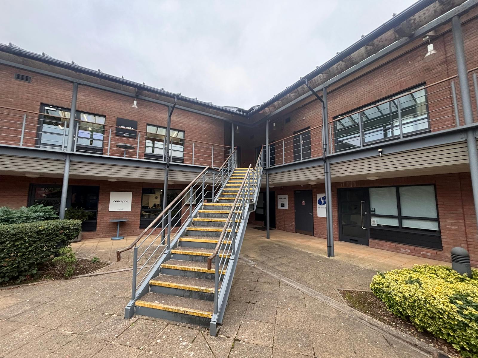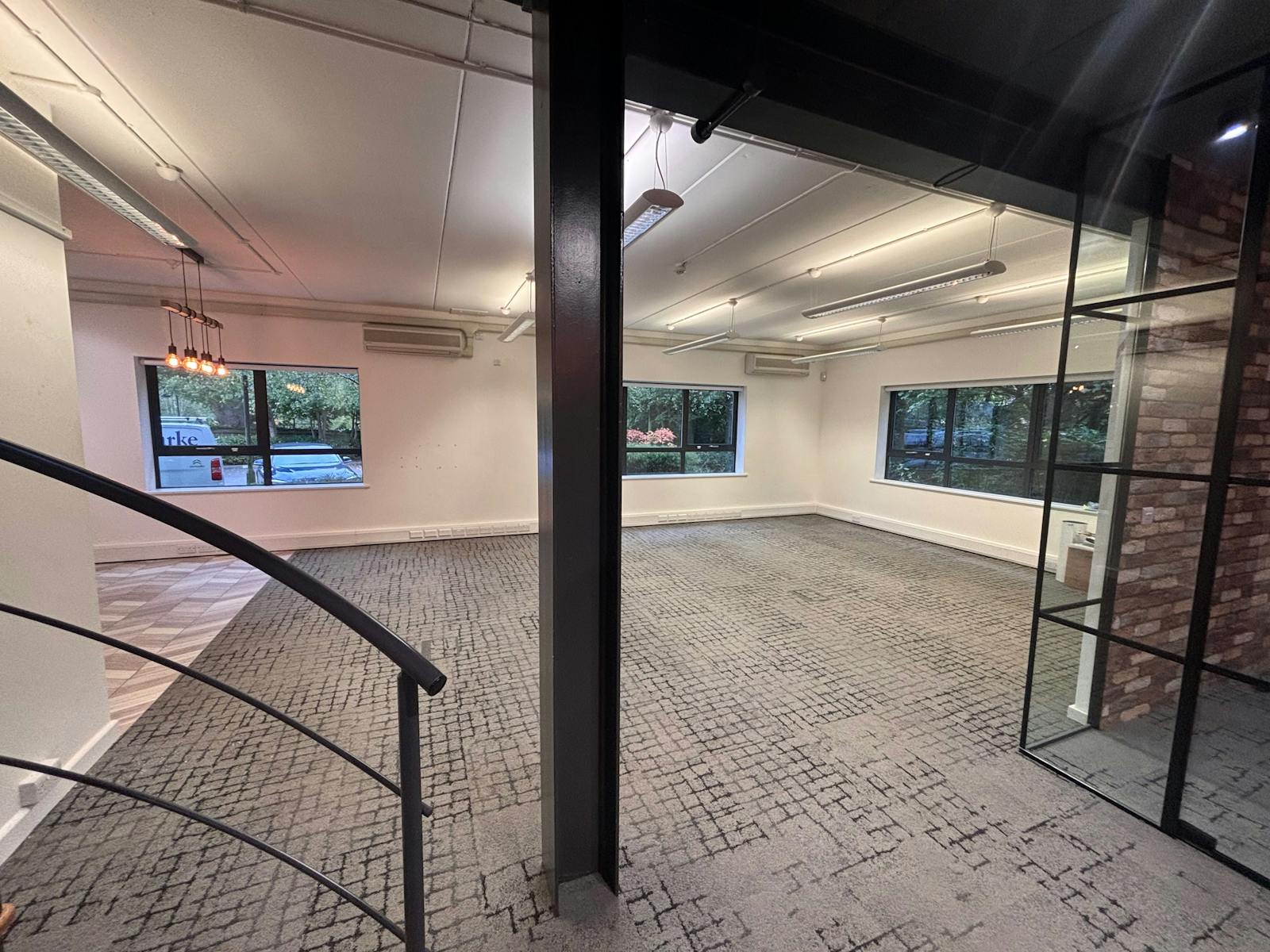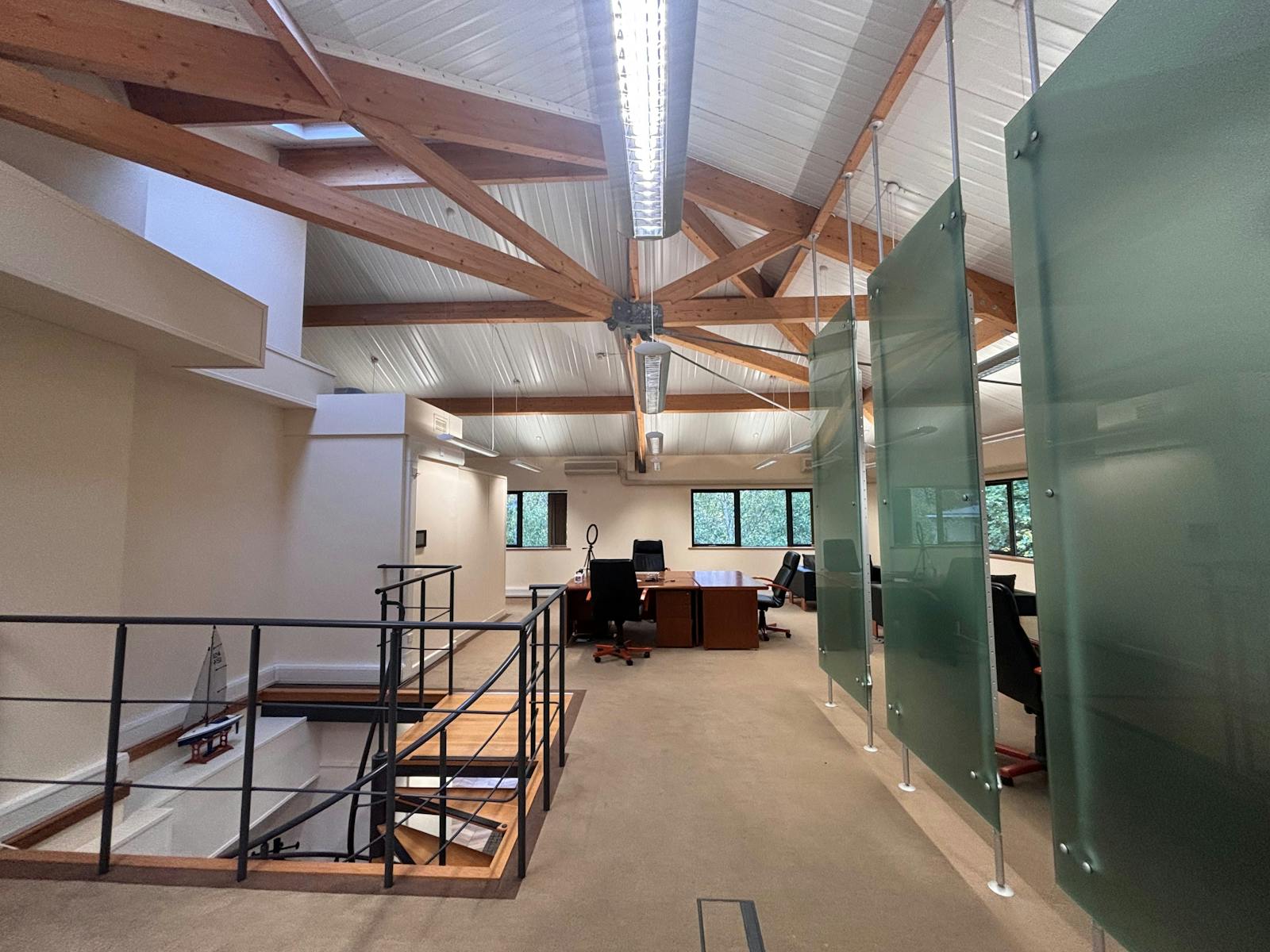 The building itself is steel framed with exposed pitched beams on the first floor. Internally, there is a spiral staircase linking both floors. There is an external staircase providing access to the first floor, meaning the ground and first floor could be made available separately.