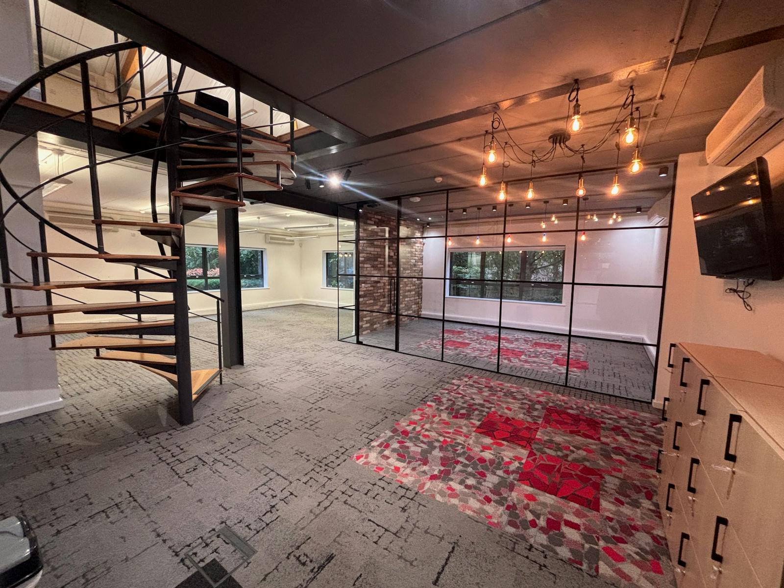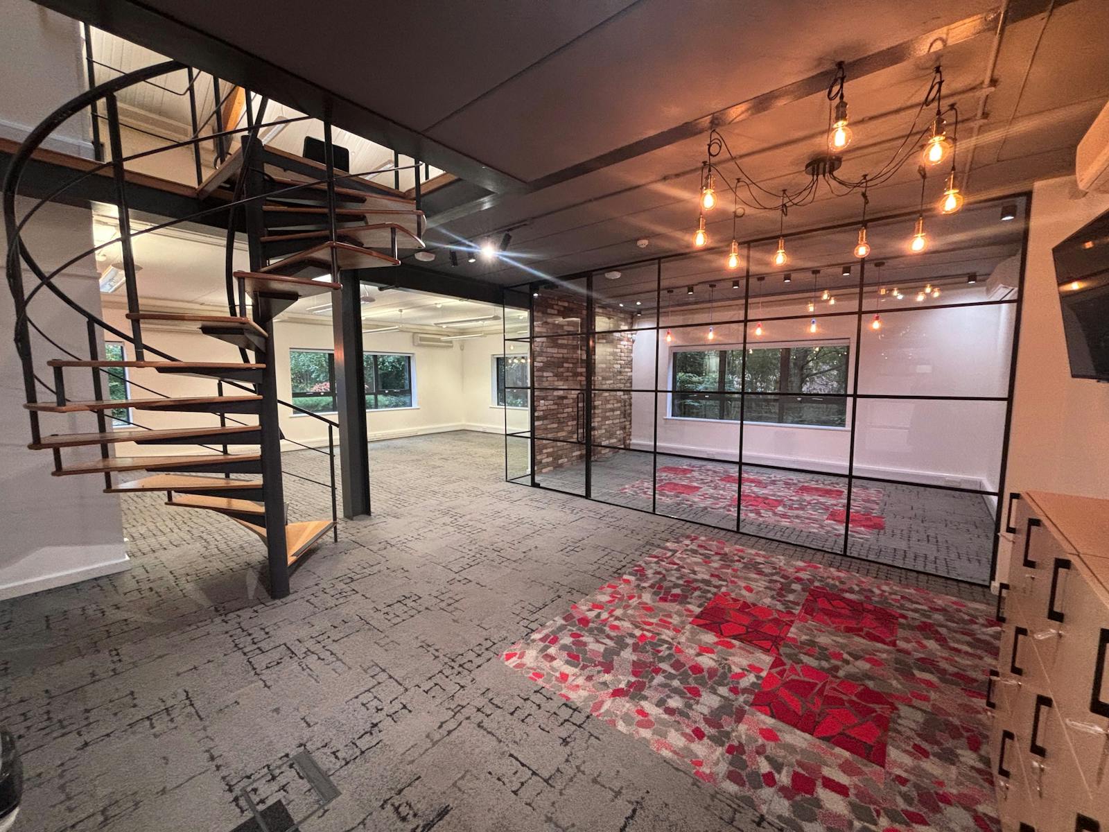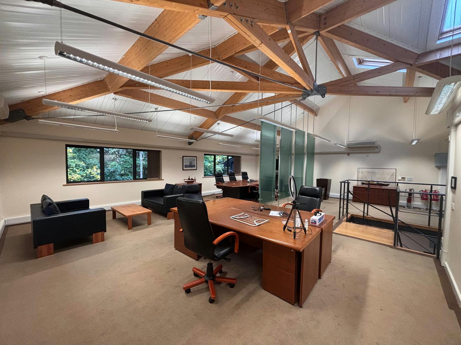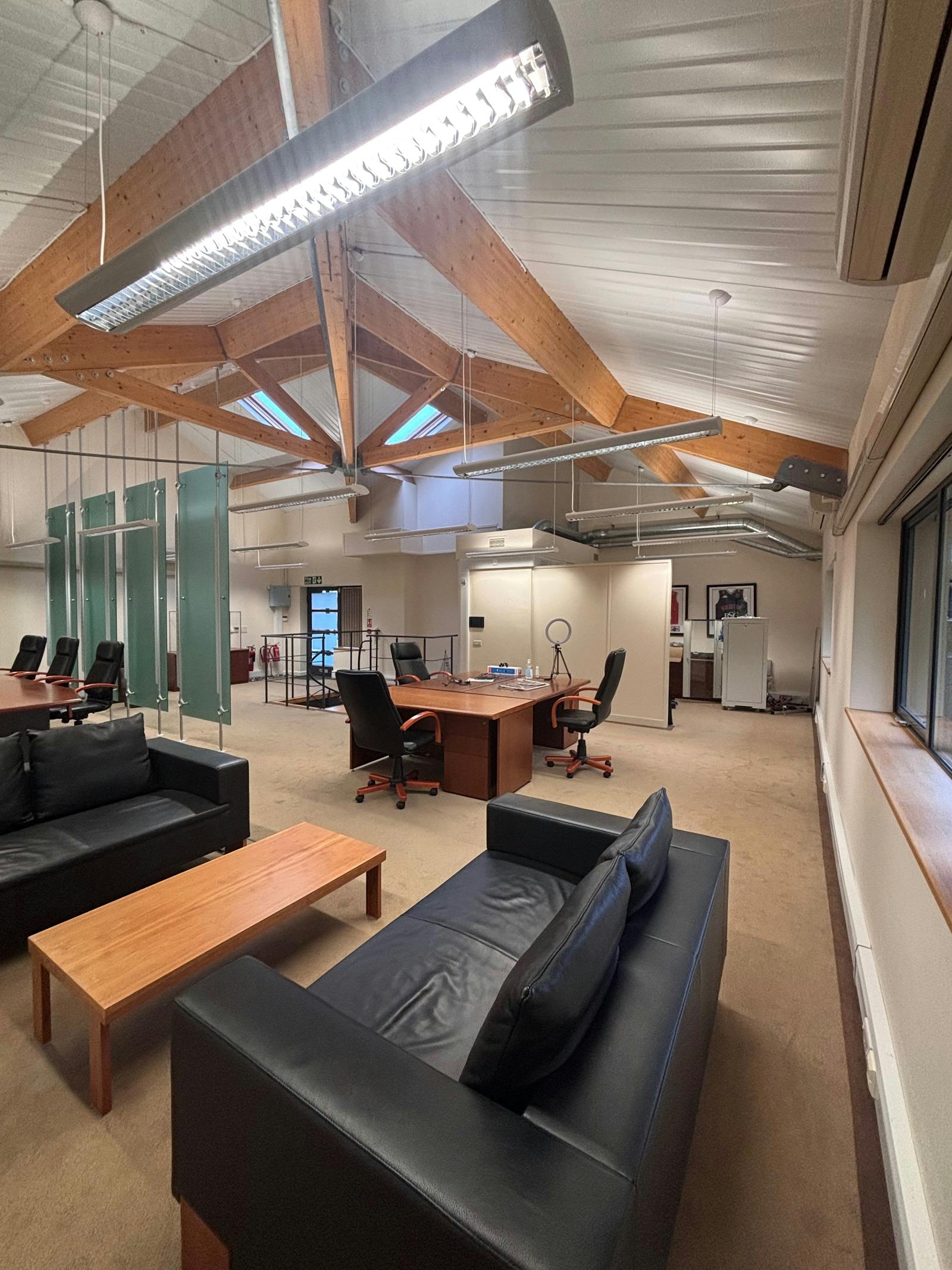 The building itself is steel framed with exposed pitched beams on the first floor. Internally, there is a spiral staircase linking both floors. There is an external staircase providing access to the first floor, meaning the ground and first floor could be made available separately.