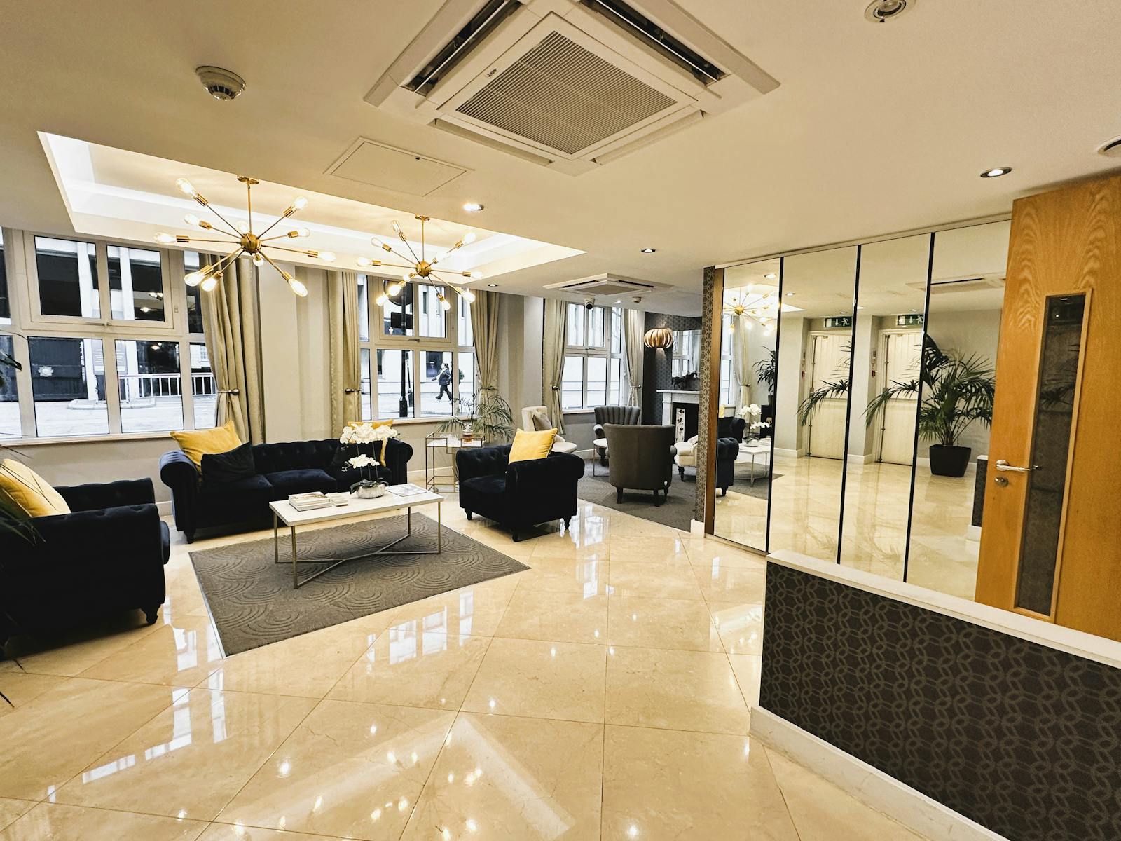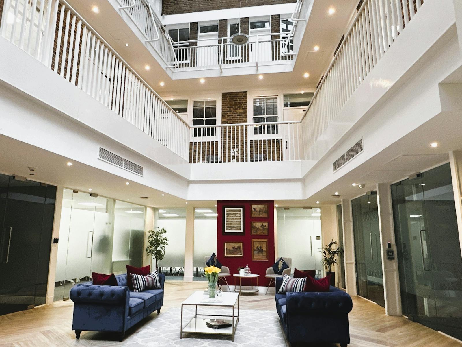 A modern, family run serviced office building that combines a contemporary façade and internal finishes with a multi storey Victorian era stable block. 60 Petty France boasts a number of unique offerings for its guests that include a gym, large communal kitchen with free daily breakfasts, low cost meeting rooms and bespoke decorations.