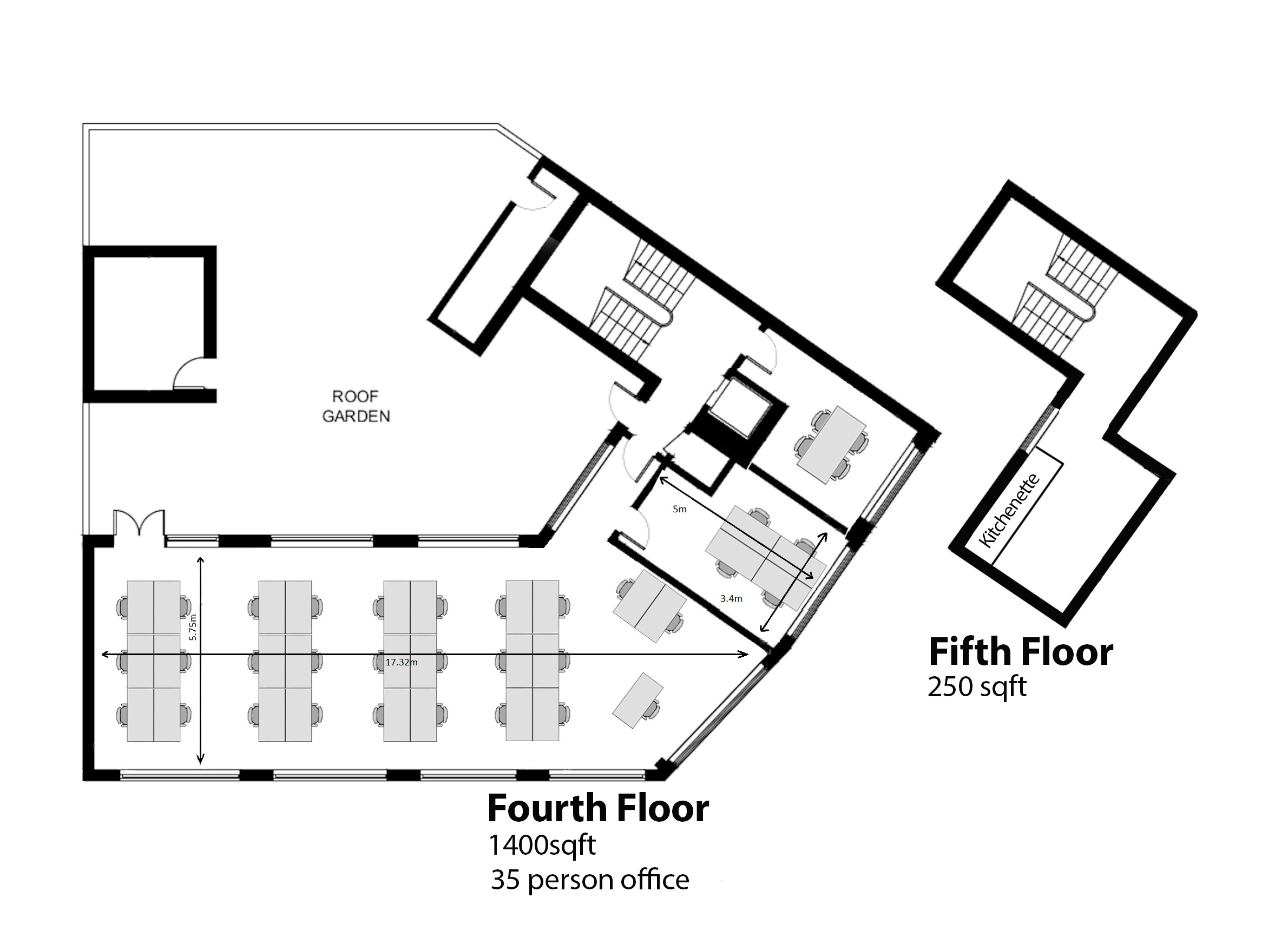 This business centre offers 24/7 access, bookable meeting rooms / event spaces, and a lovely roof garden for breaks, socials, and client catch-ups.