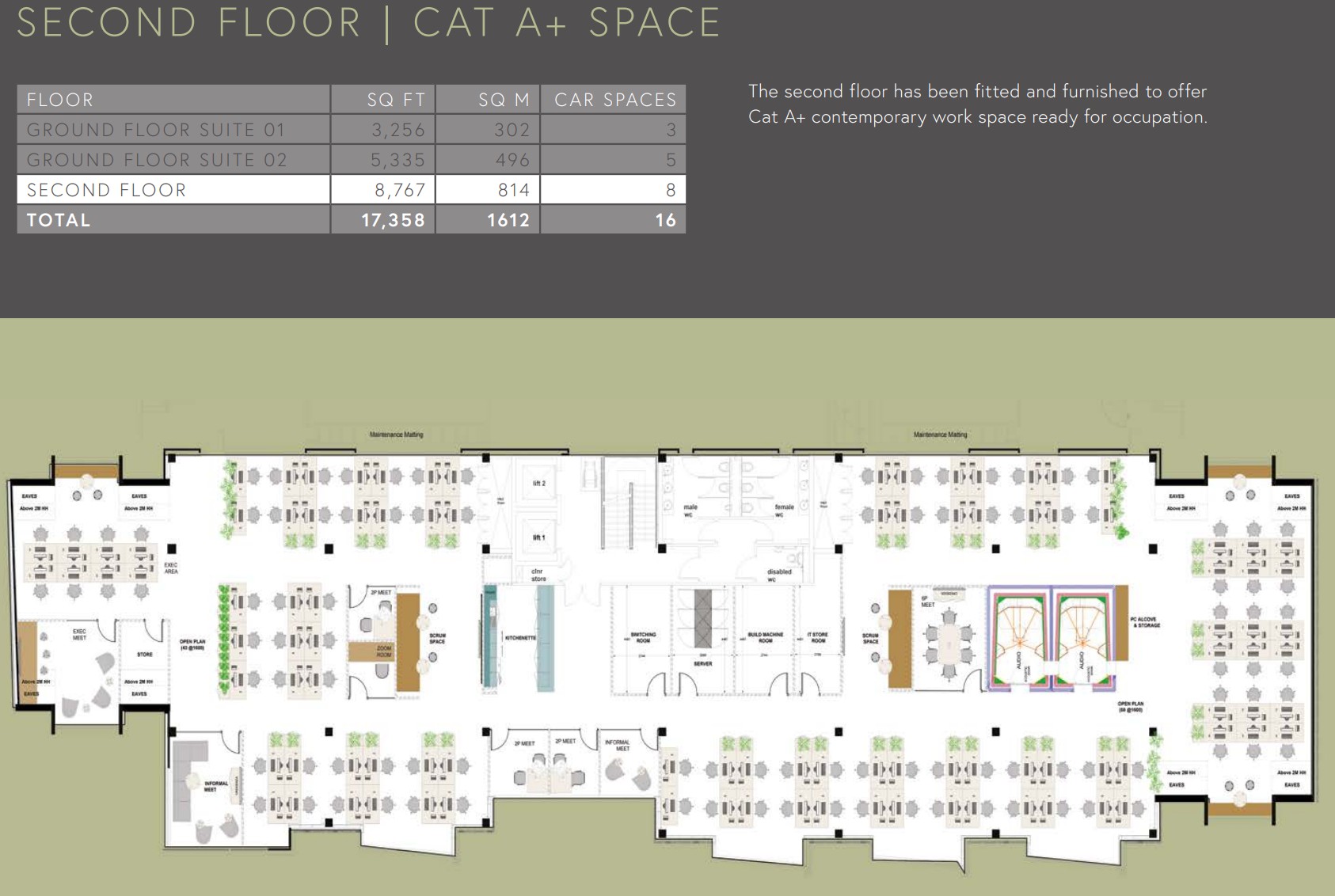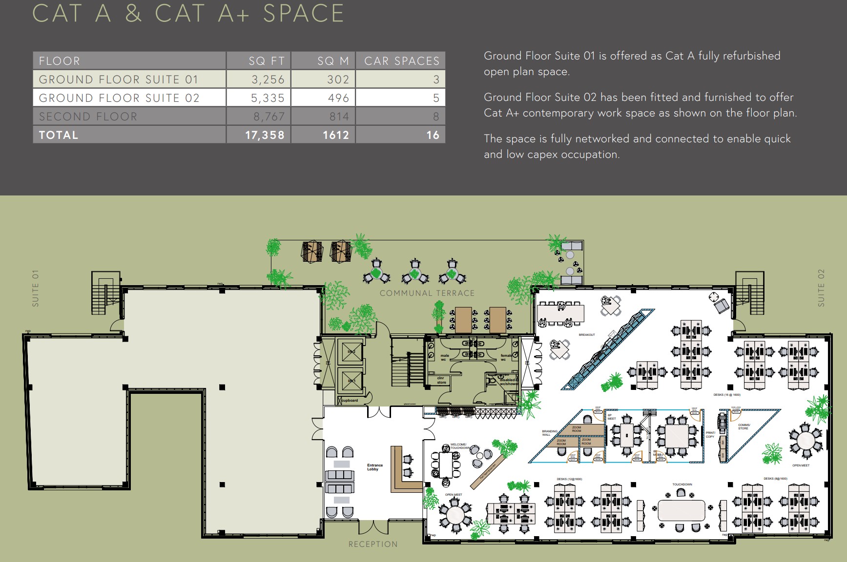 - Ground Floor Suite 01 is offered as Cat A fully refurbished open plan space.