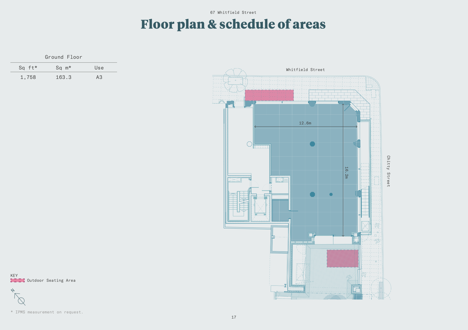 The unit occupies a self contained corner unit at the junction of Whitfield Street and Chitty Street. The property forms part of the Derwent London development known as 80 Charlotte Street comprising over 300,000sqft of office accommodation.