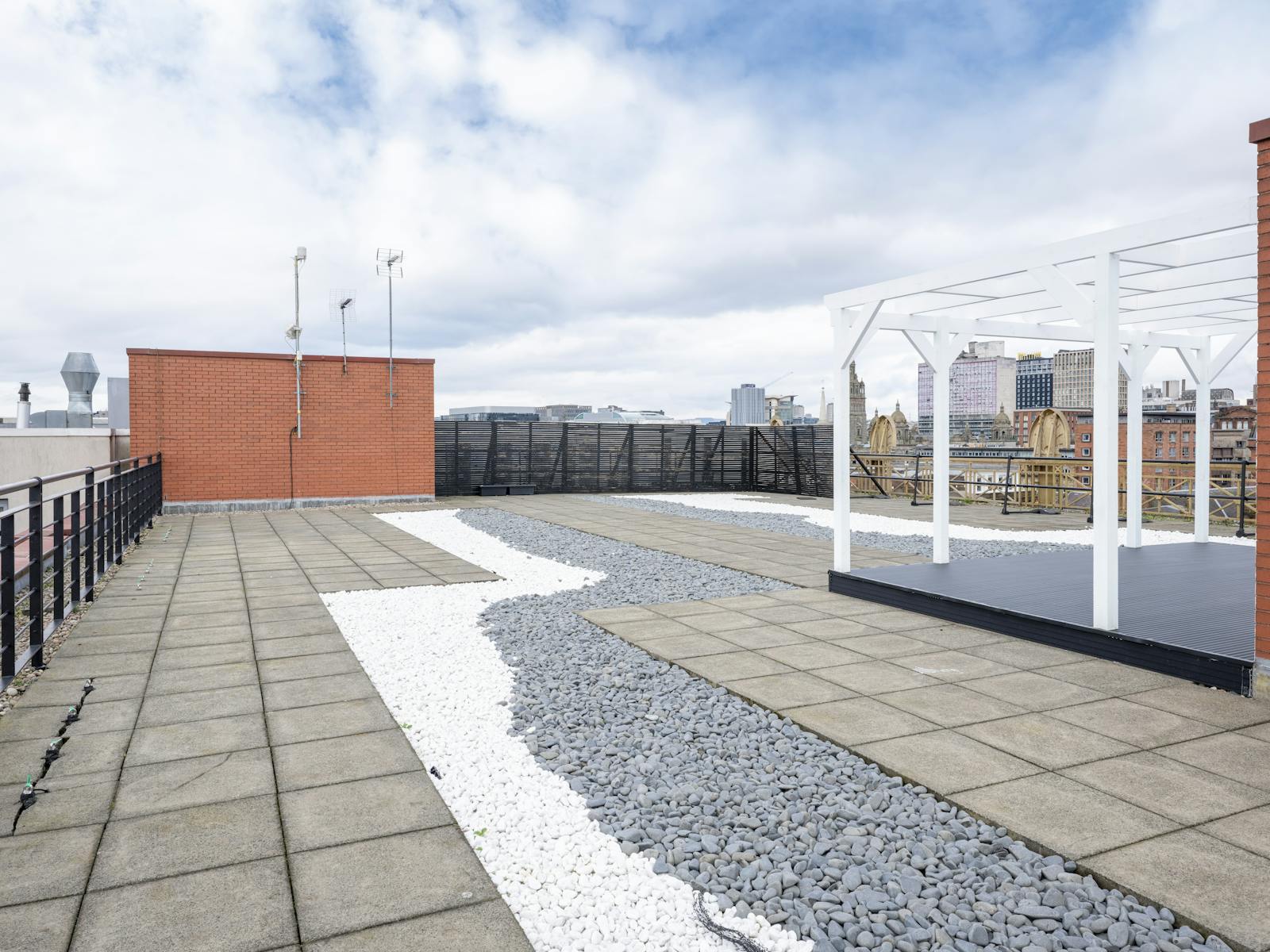 The building benefits from a large communal roof-top terrace with panoramic views of the city.