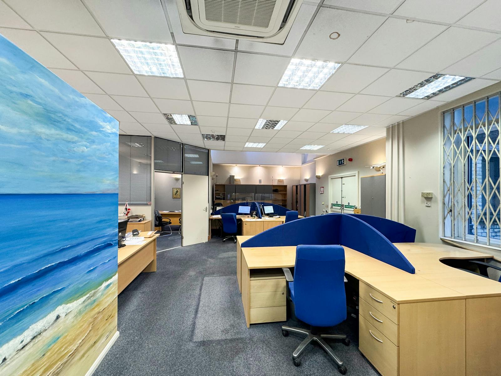 The space is DDA compliant, includes a large WC, and is fitted with air conditioning throughout (not tested). The unit is currently configured as a travel agency.