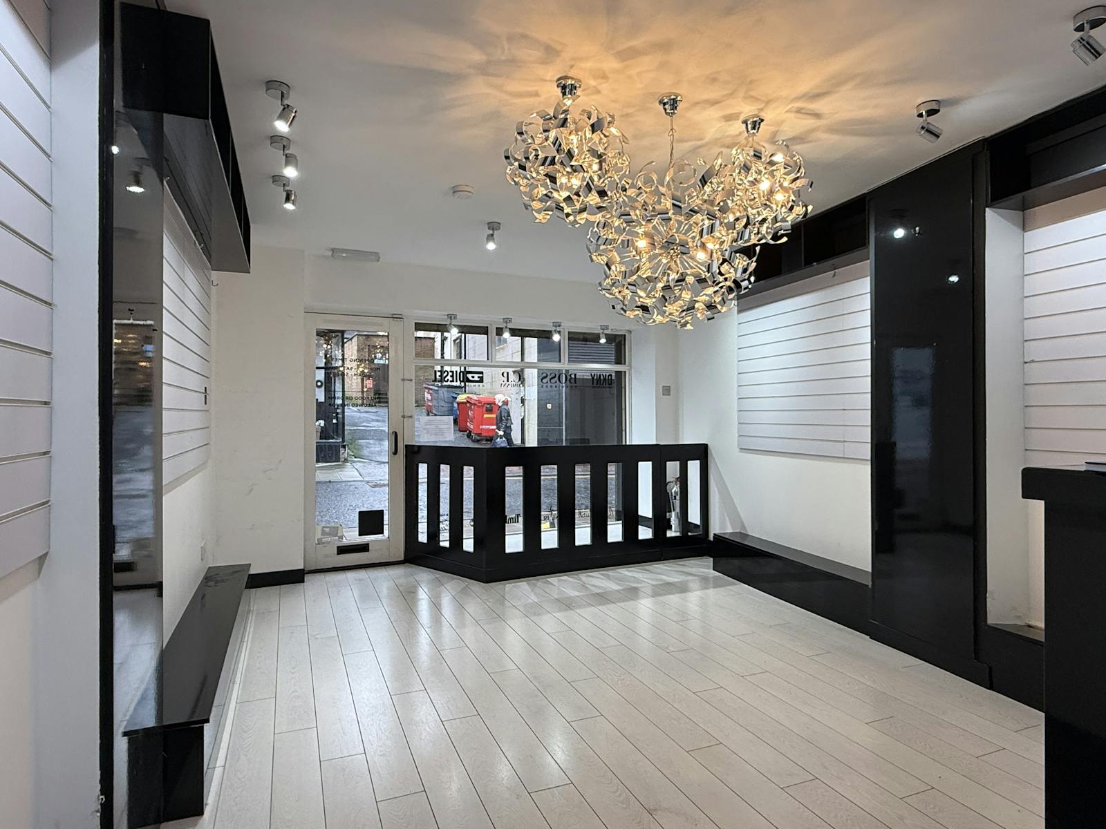The retail frontage to Bank Street comprises a timber/glazed entrance door together with a timber framed display window. The entire frontage has the benefit of electric outer roller security shutters.