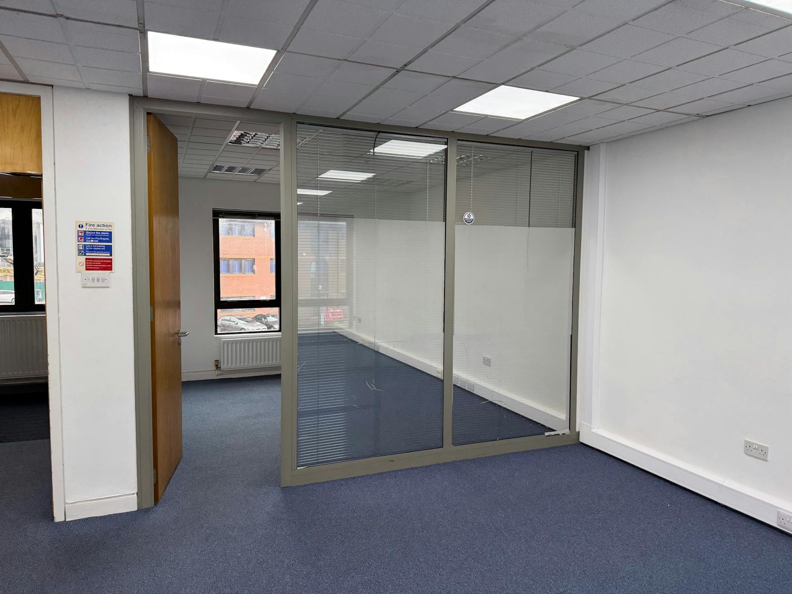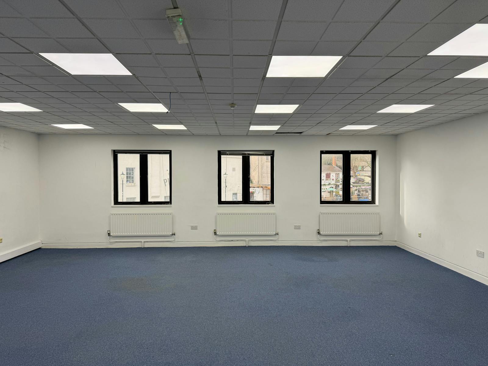 The space available is situated on the first floor and benefits from carpet flooring, suspended ceiling with inset lighting, double glazed windows, glazed partition room, and WC facilities to each floor.