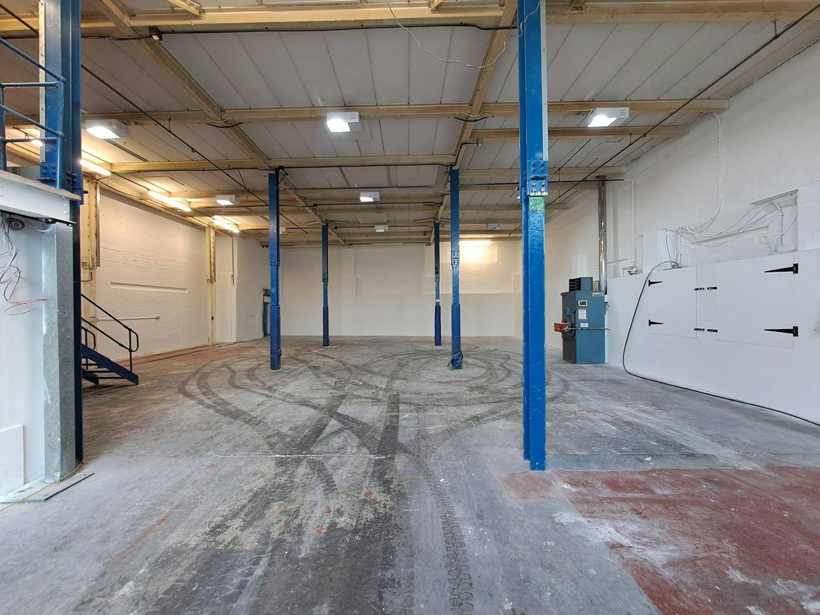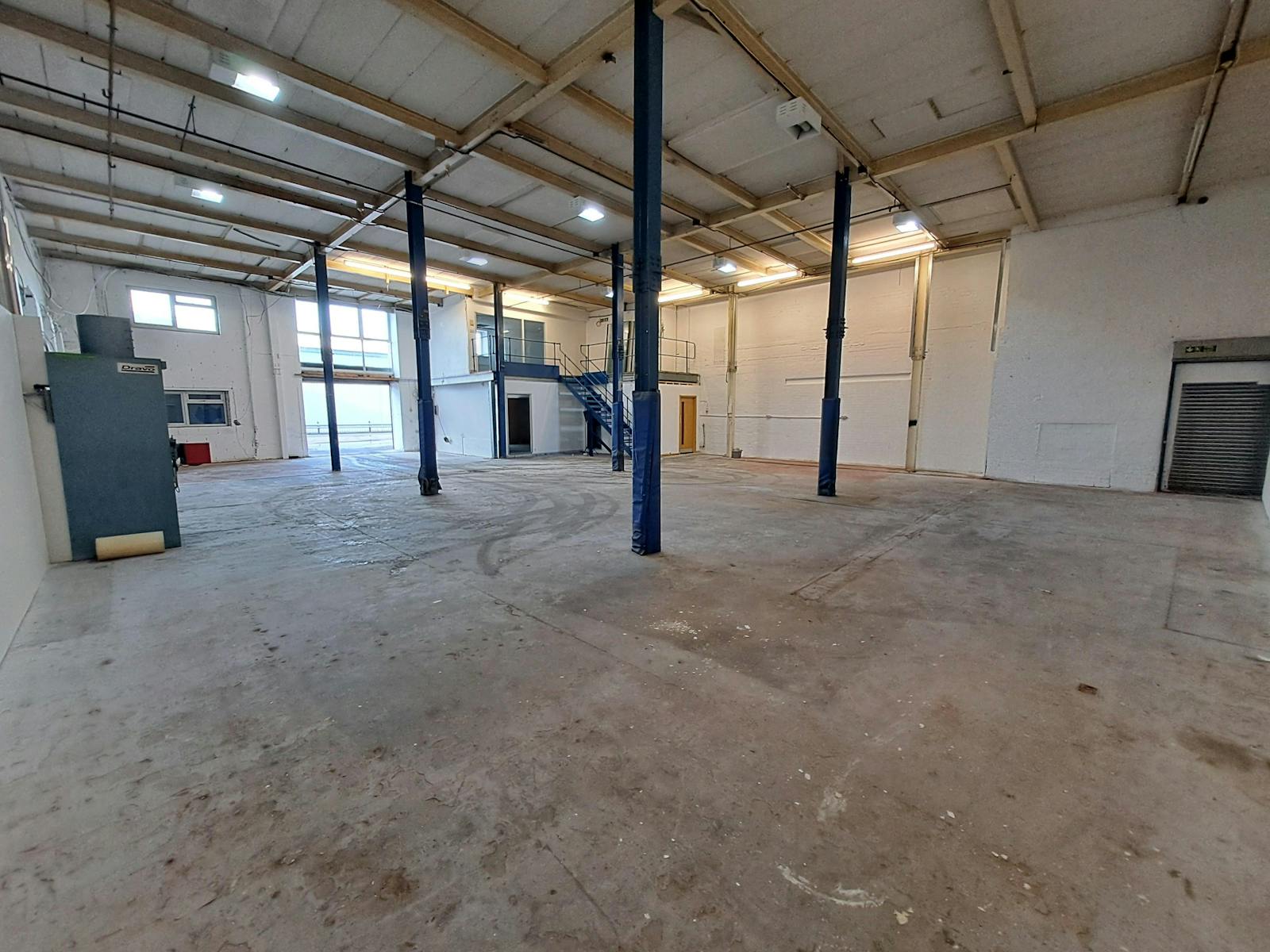The warehouse provides open-plan accommodation with a working height of approximately 5.5 metres and benefits from a roller shutter loading door to the front elevation. The premises include a ground floor annexe providing kitchen and WC facilities, together with first floor office accommodation.